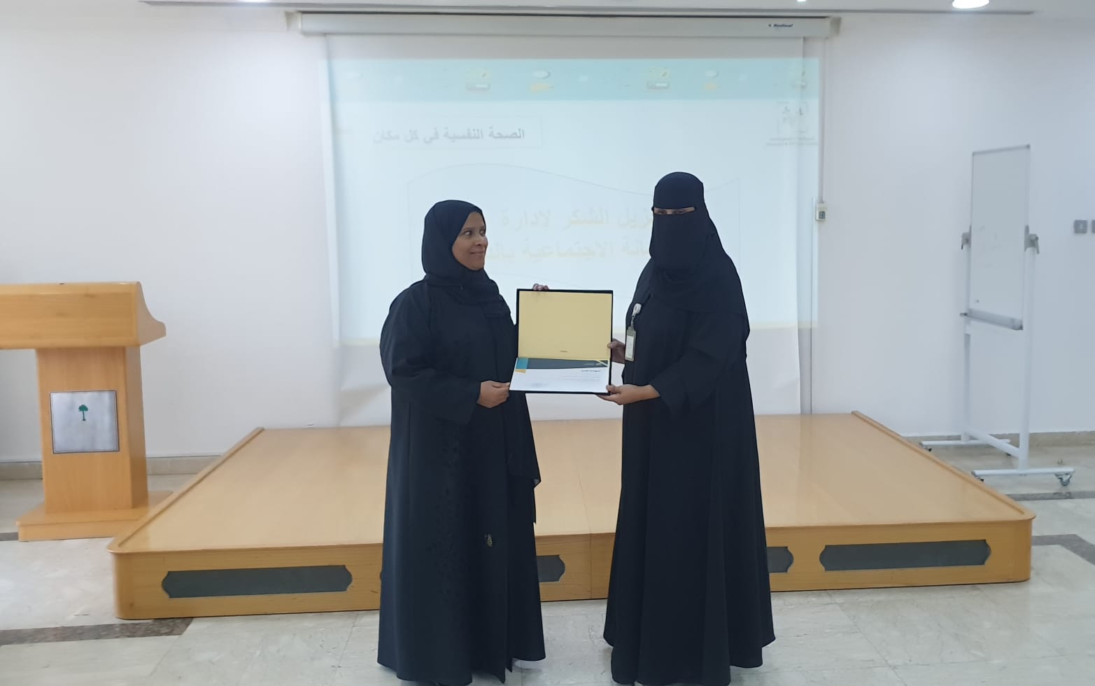 وفي الختام قدمت مديرة الدار شهادة شكر وتقدير للدكتورة لما بذلته من مجهود وعطاء .