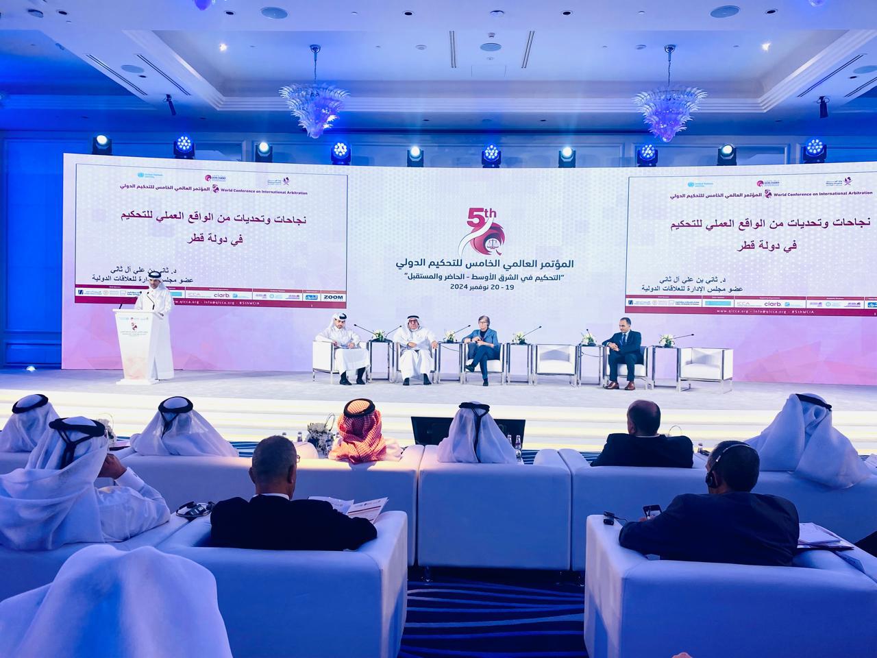 برعاية رئيس مجلس الوزراء وزير الخارجية القطري، الشيخ محمد بن عبدالرحمن آل ثاني، انطلقت يوم الثلاثاء 19 نوفمبر 2024 فعاليات المؤتمر العالمي الخامس للتحكيم الدولي في الدوحة. يُنظَّم الحدث من قبل مركز قطر الدولي للتوفيق والتحكيم بغرفة قطر تحت شعار “التحكيم في الشرق الأوسط - الحاضر والمستقبل”، بمشاركة نخبة من الخبراء والمحكمين الدوليين الذين يمثلون جهات قانونية وتجارية رائدة، إلى جانب أكثر من 35 متحدثًا عالميًا.