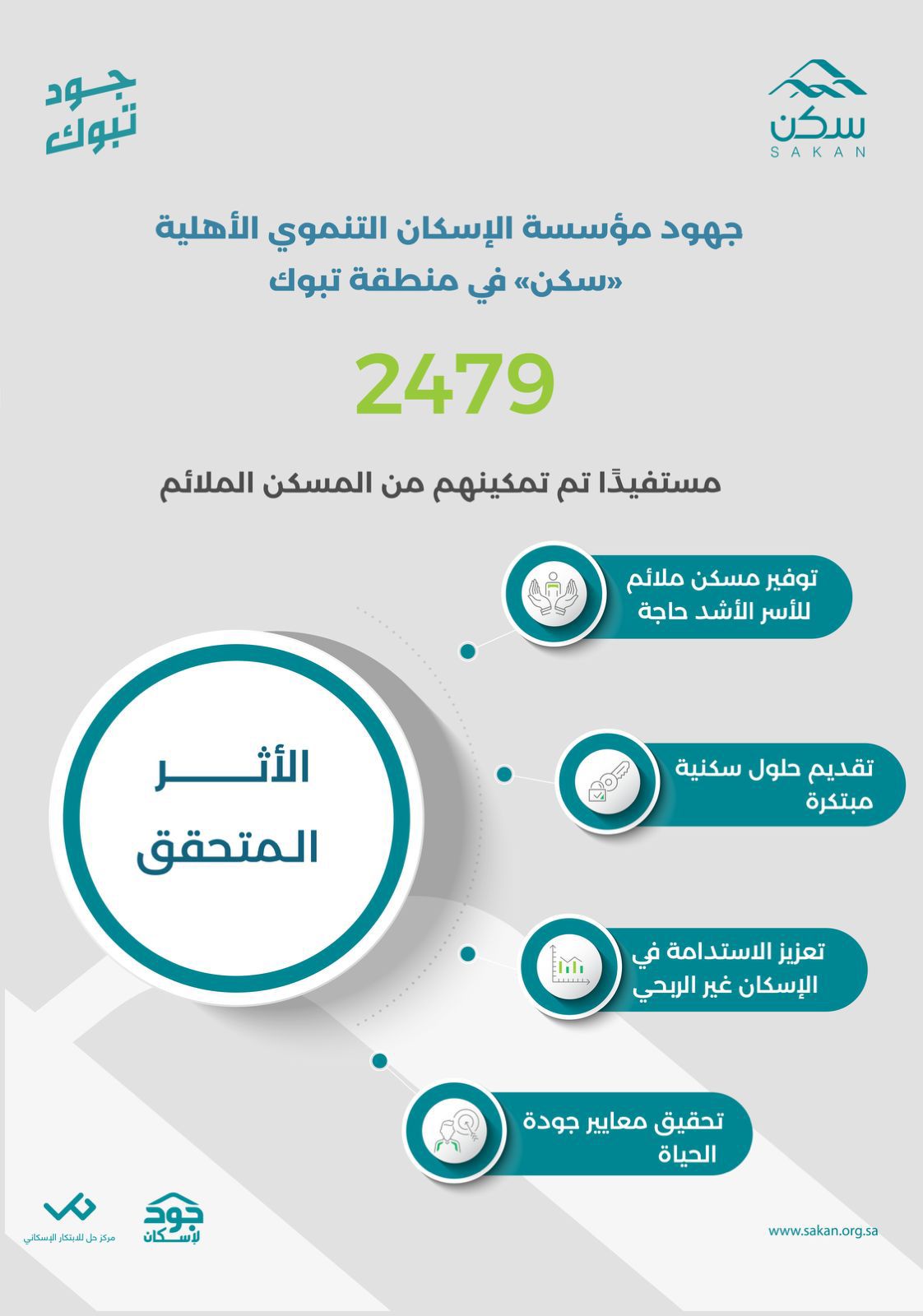 في إطار الجهود المستمرة لدعم الأسر الأشد حاجة، أعلنت مؤسسة الإسكان التنموي الأهلية “سكن” عن مساهمتها في تمكين أكثر من 2479 مستفيد من الأسر الأشد حاجة للمسكن الملائم في منطقة تبوك حتى نهاية الربع الثالث للعام 2024 م، مما ساهم في تلبية احتياجات عددًا من الأسر المستحقة واستدامة العطاء في المملكة.