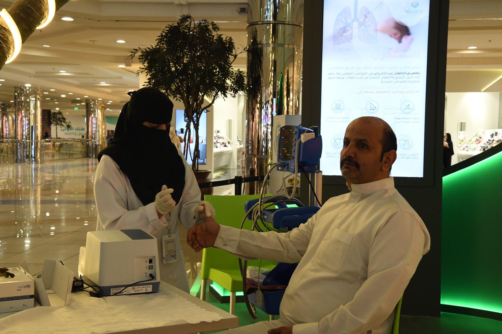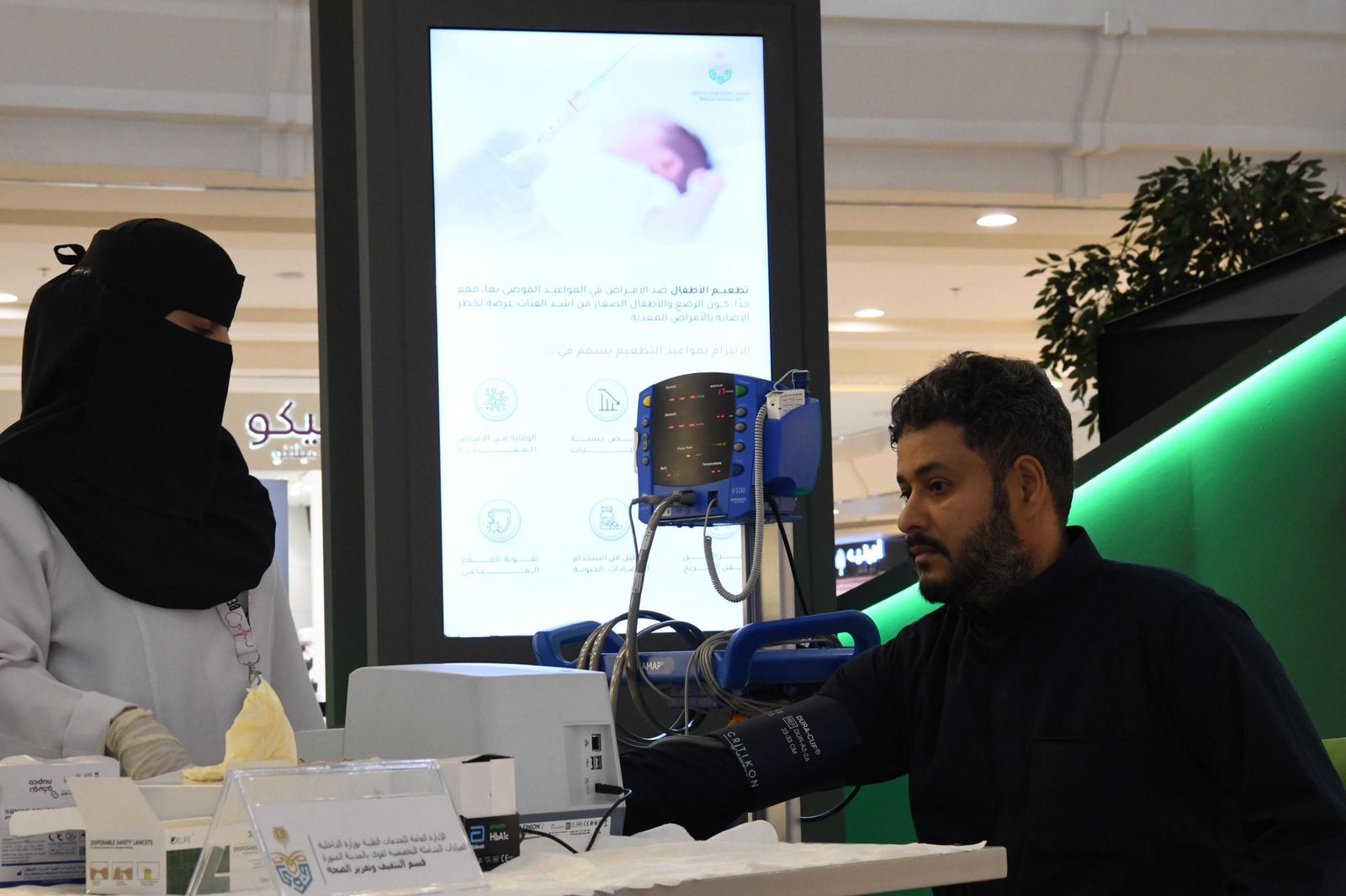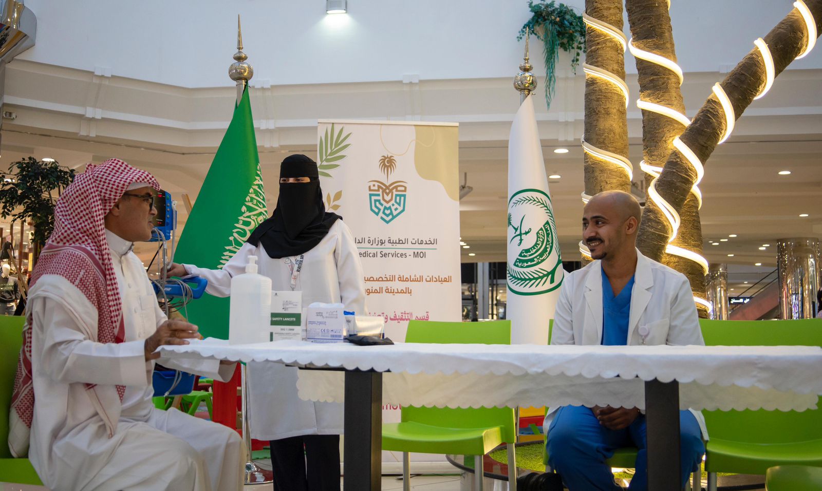 وشملت مشاركة الخدمات الطبية، تقديم خدمات قياس العلامات الحيوية ومستوى السكر في الدم وفحص النظر، وركنًا توعويًا لتعزيز الصحة العامة، وبث مواد ورسائل توعوية وعروضًا مرئية للتعامل مع الحالات الصحية.