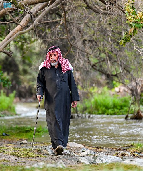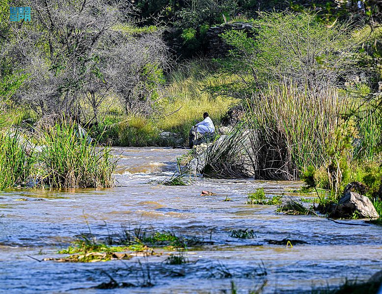 جمعت الطبيعة جمالها بين أحضان وادي الحمدة بمنطقة الباحة، وأصبح بطن الوادي ومنحدراته الجبلية بساطًا أخضر يزدان بانسياب جداول المياه وترانيم خريرها الممتزج بتغاريد الطيور وحفيف أشجاره الباسقة، ونسائم شذى النباتات العطرية التي تعطر الأجواء.