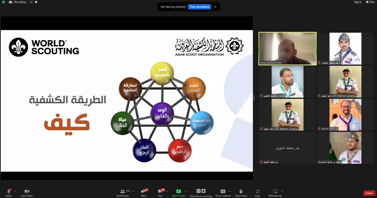 حيث أكد نائب رئيس الجمعية الدكتور عبدالرحمن بن إبراهيم المديرس, في بداية الندوة على أهمية الطريقة الكشفية وعناصرها وضرورة تطبيقها أثناء أنشطة الراشدين الكبار في الكشفية سواء الحضورية أو الافتراضية وصولاً إلى تطبيقها أثناء تنفيذ البرامج الكشفية مع الفتية والشباب على كافة المستويات.