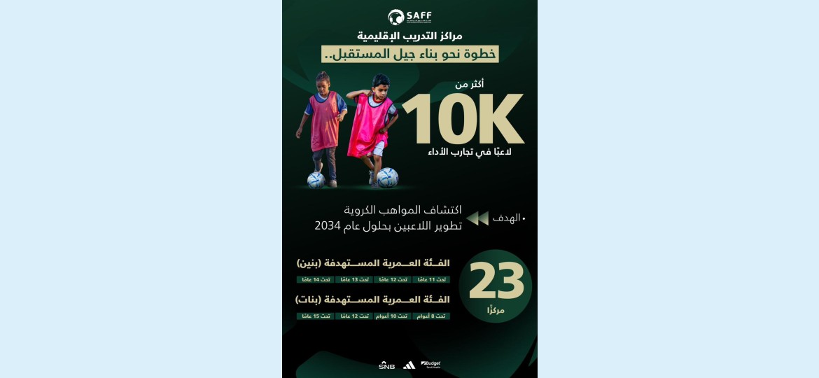 وتأتي مشاركة مراكز التدريب الإقليمية هذا الموسم بعدد أكبر بعد افتتاح مراكز تدريب إقليمية جديدة في الحدود الشمالية، الجوف، عسير وحفر الباطن، ليصل الإجمالي إلى 17 مركزًا في مختلف مناطق المملكة، حيث تمثل مراكز التدريب الإقليمية واحدة من ثمار جهود الاتحاد السعودي لكرة القدم سعيًا لتحقيق أحد أهم مستهدفات استراتيجية كرة القدم السعودية التي تم إطلاقها في سبتمبر 2021، والتي تستهدف تطوير أكثر من 4 آلاف لاعب بحلول عام 2025 ليكونوا نواة للمنتخبات الوطنية.