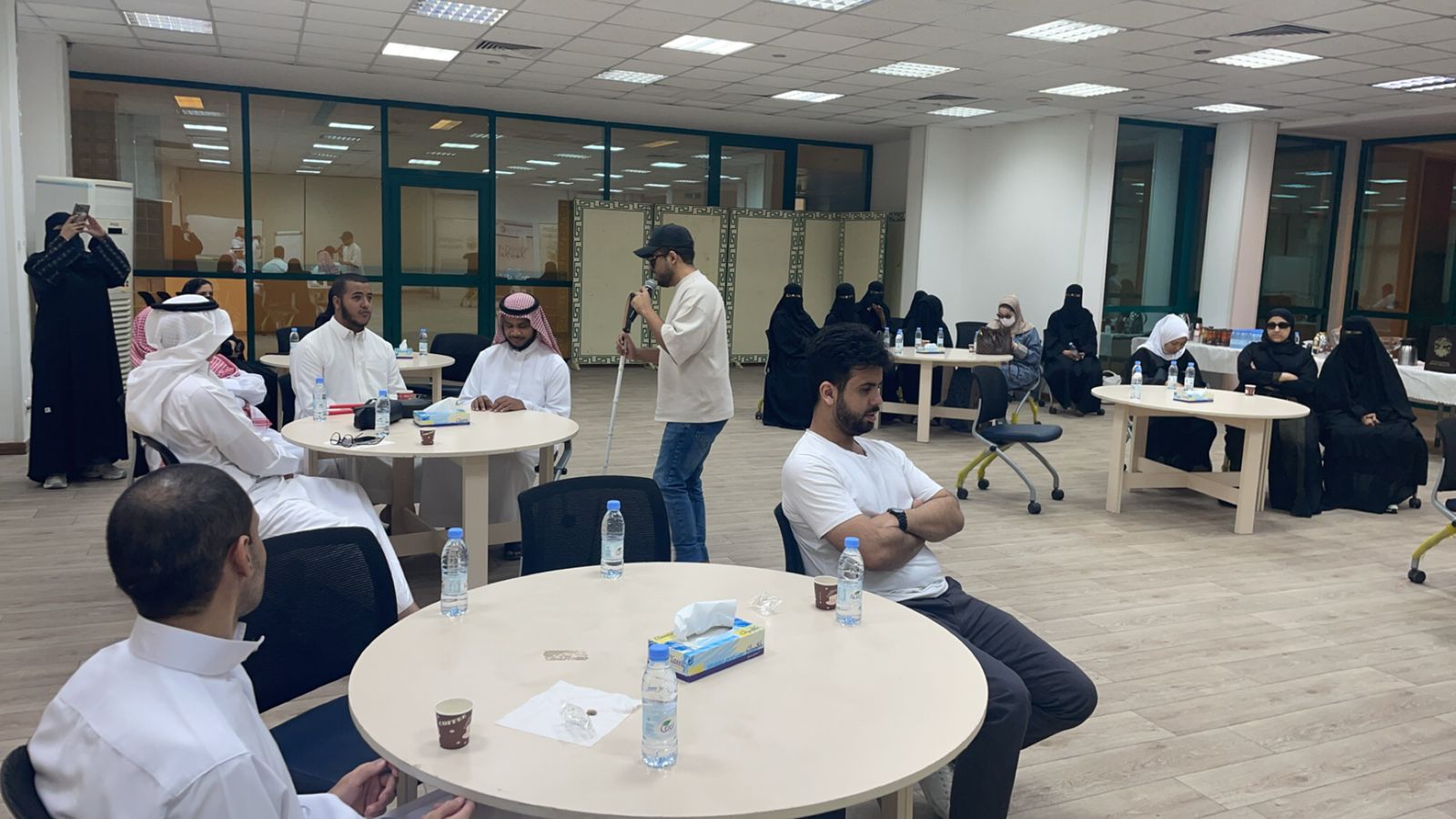 وتم فتح النقاش بين المدرب والحضور لمعرفة تفضيلهم الاستخدام للكمبيوتر أو الأجهزة المحمولة، وعن كيفية استخدام خوارزميات الذكاء الاصطناعي وكيفية الاستفادة منها ثم تحدث عن أتمتة المنزل الذكي وشرح بعض الأفكار في كيفية توليف بعض القطع المنزلية وربطها" بألكسا " المساعد الذكي الشخصي المفيد للمكفوفين.