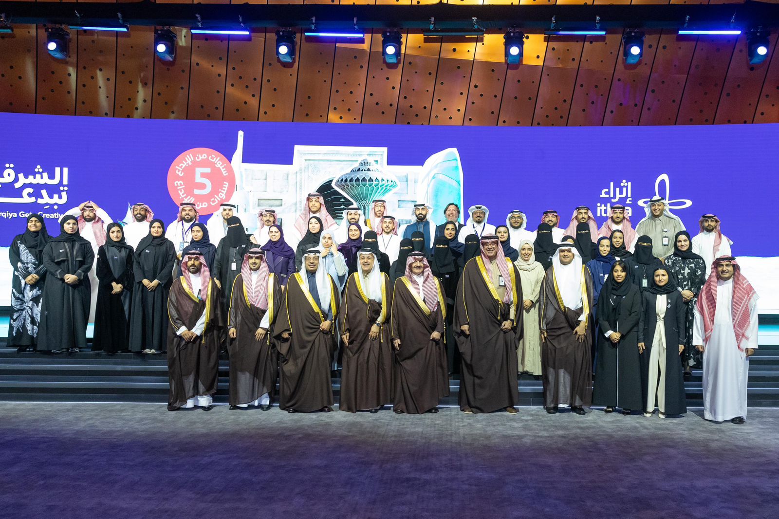 بحضور ورعاية صاحب السمو الملكي الأمير سعود بن نايف بن عبد العزيز أمير المنطقة الشرقية اختتم مركز الملك عبد العزيز الثقافي العالمي (إثراء)، فعاليات النسخة الخامسة من مبادرة "الشرقية تبدع"، وذلك بحفل أقيم اليوم الاثنين في مقر المركز بالظهران، وسط حضور عدد من قياديين وإداريين شركة أرامكو السعودية وممثلي الجهات المشاركة من الشركاء الرئيسيين والاستراتيجيين.