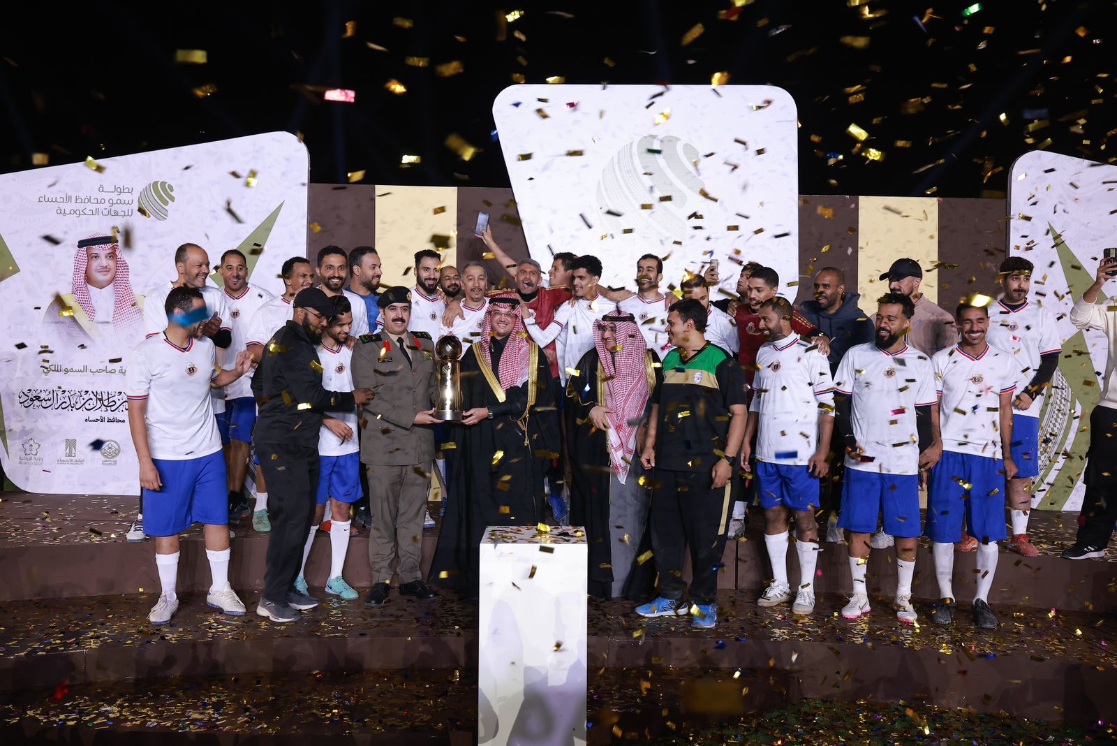 وفي الختام كرّم سموّه اللجان العاملة والجهات الحكومية والفرق الفائزة بالمراكز الأولى، حيث حصد فريق شرطة محافظة الأحساء المركز الأول، تلاه فريق أرامكو السعودية في المركز الثاني، وفريق المؤسسة العامة للري في المركز الثالث ، كما تم منح جائزة الفريق المثالي لفريق إدارة المساجد والدعوة والإرشاد ، وعلى الصعيد الفردي حصل لاعب الدفاع المدني وليد الحربي على جائزة هدّاف البطولة، بينما فاز لاعب أمانة الأحساء عمر الخليفة بجائزة أفضل حارس، وإداري قوة أمن المنشآت مشعل الصاهود بجائزة أفضل إداري فريق، ومدرب الحرس الوطني وقاع الشمري بجائزة أفضل مدرب، ولاعب أرامكو السعودية عبدالمجيد القحطاني بجائزة أفضل لاعب، وفاز الحرس الوطني بجائزة أفضل جمهور بالبطولة