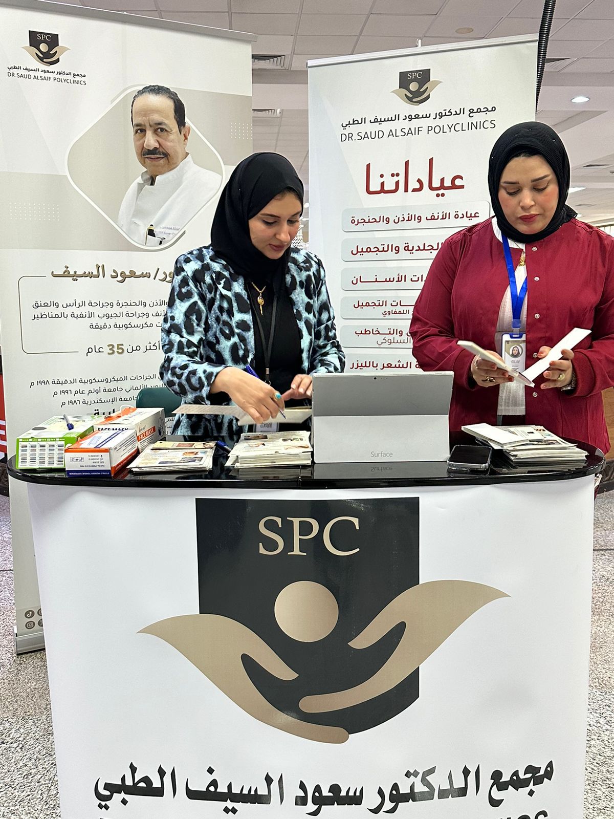 وقد مثل المجمع في تقديم التوعية الصحية الدكتورة مها الصقار طبيبة الجلدية والتجميل والدكتورة ندى عثمان اخصائية طب وجراحة الفم والاسنان واخصائية البشرة الأستاذة زينب عاشور واخصائية النطق والتخاطب الأستاذة هالة موسى و الاستشارية الانف والاذن والحنجرة الدكتورة هدى بوبشيت حيث القت محاضرة عن حساسية الانف الموسمية والجيوب الانفية وكيفية التعامل والحرص والوقاية .