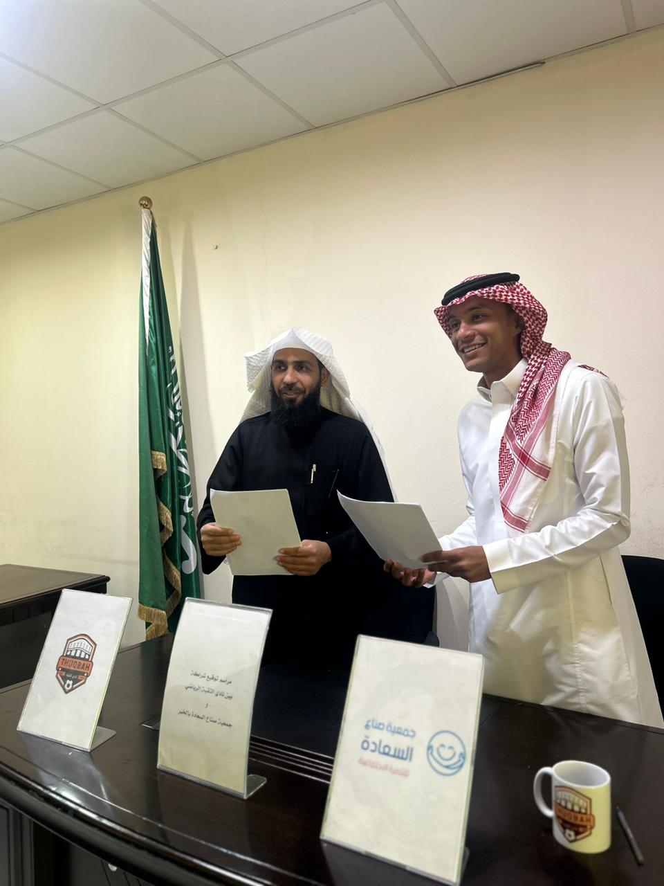 مثّل نادي الثقبة رئيس مجلس الإدارة أ.الوليد الصياح، ومثّل جمعية صناع السعادة رئيس مجلس الإدارة د.ياسر آل داشل بحضور أ.علي الخشرمي عضو مجلس إدارة جمعية صناع السعادة ومدير المسؤولية المجتمعية في نادي الثقبة أ.عائشة الناجم وذلك بهدف تعزيز العمل المشترك والأنشطة والمبادرات المجتمعية بين الجهتين.