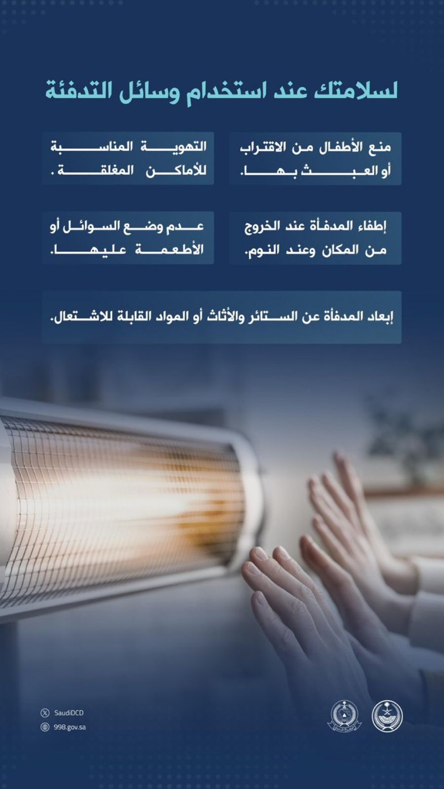 الدفاع المدني يؤكد أهمية اتباع إجراءات السلامة عند استخدام وسائل التدفئة