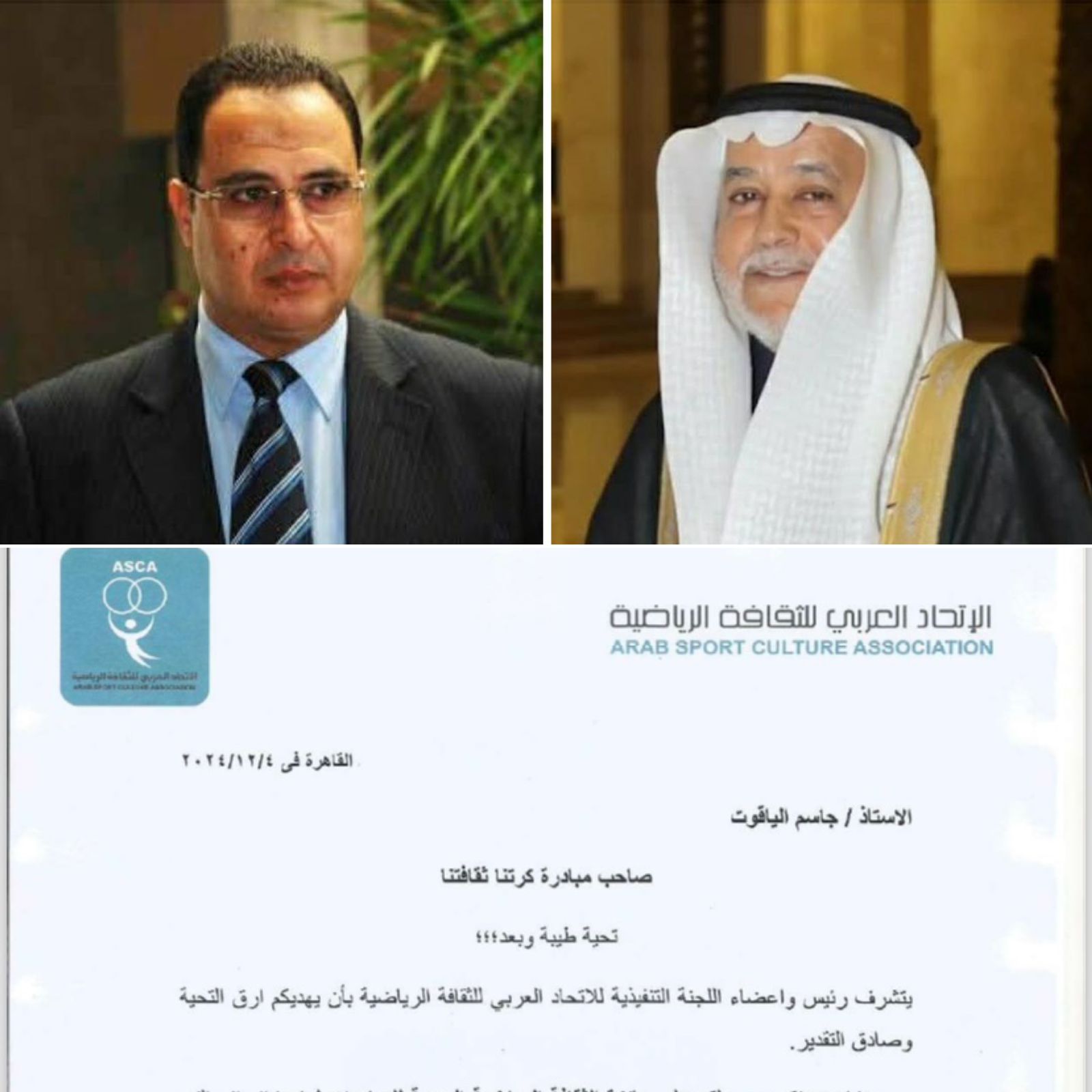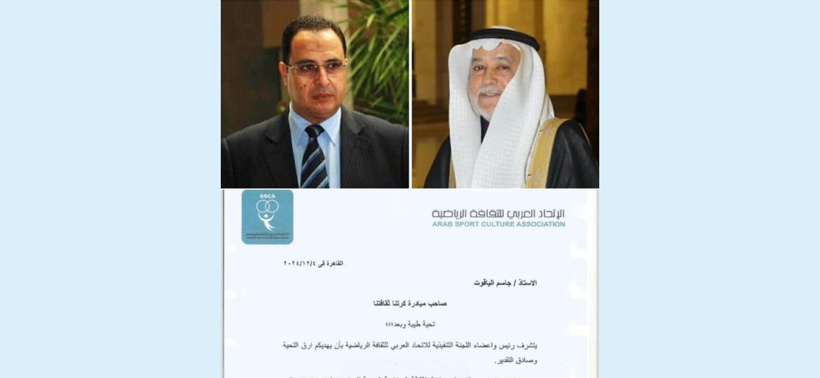أعلن الاستاذ اشرف محمود رئيس الاتحاد العربي للثقافة الرياضية منح الدكتور جاسم الياقوت نائب إتحادي الاعلاميين العرب والمبدعين العرب وصاحب مبادرة كرتنا ثقافتنا جائزة الثقافة الرياضية العربية للمبادرات لعام 2024 تقديرا لمبادرته القيمة كرتنا ثقافتنا التي فازت بجائزة كتب السلام الدولية.