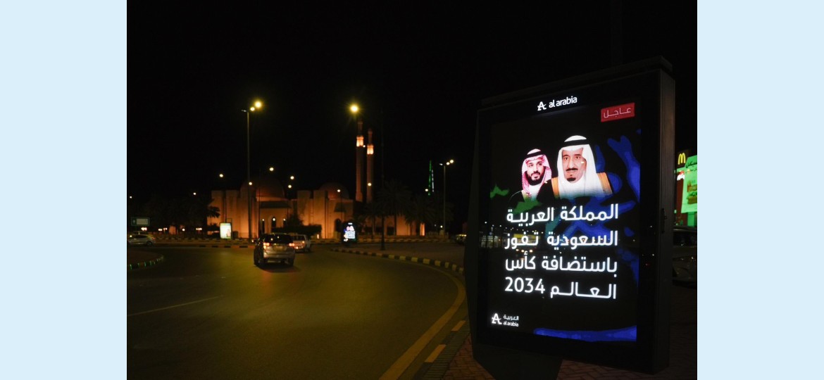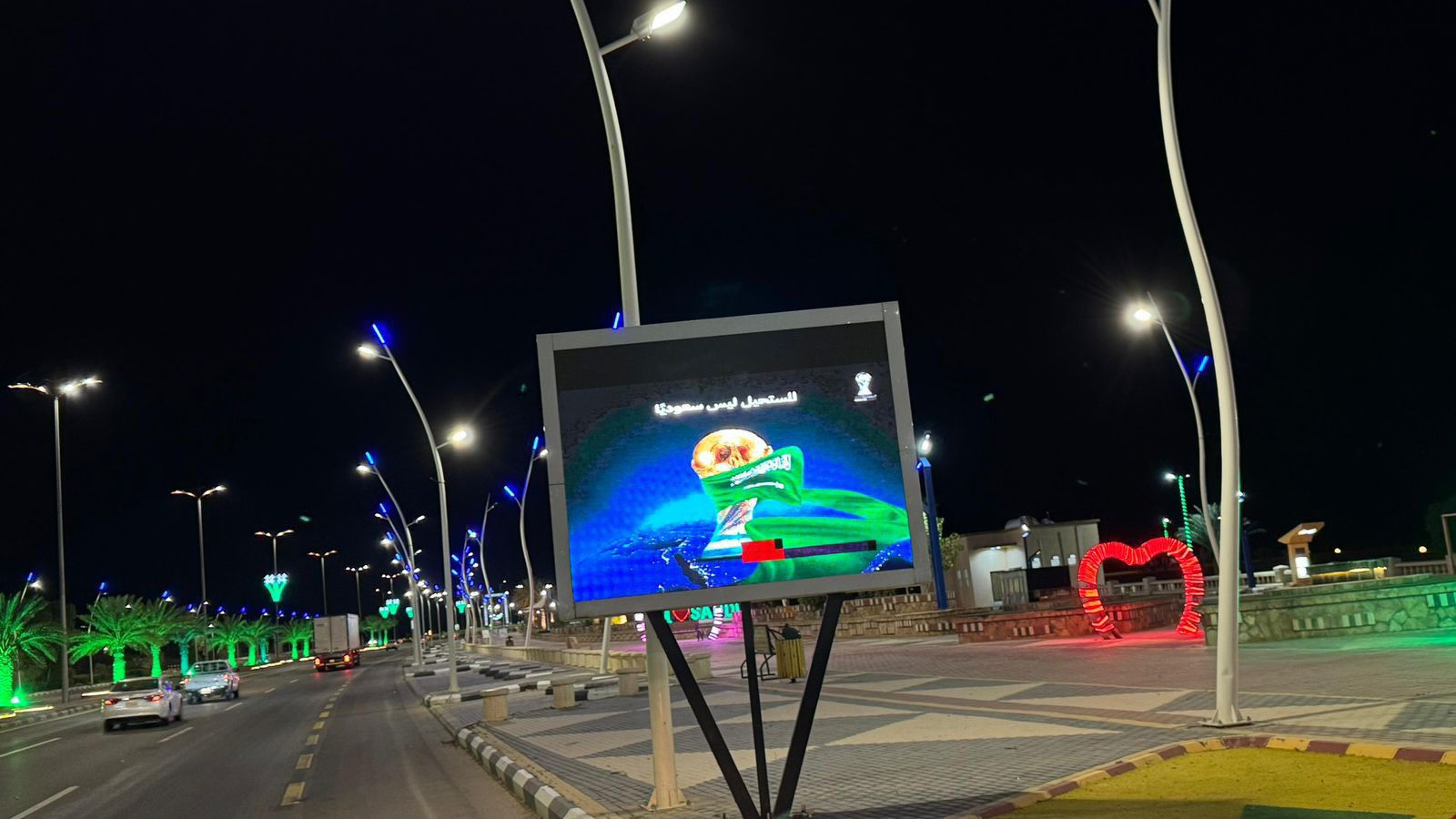 توشحت شوارع وميادين منطقة الجوف بحلة خضراء من رايات الوطن واللوحات والإضاءة الخضراء؛ احتفالًا بالإعلان الرسمي لفوز المملكة باستضافة كأس العالم 2034.