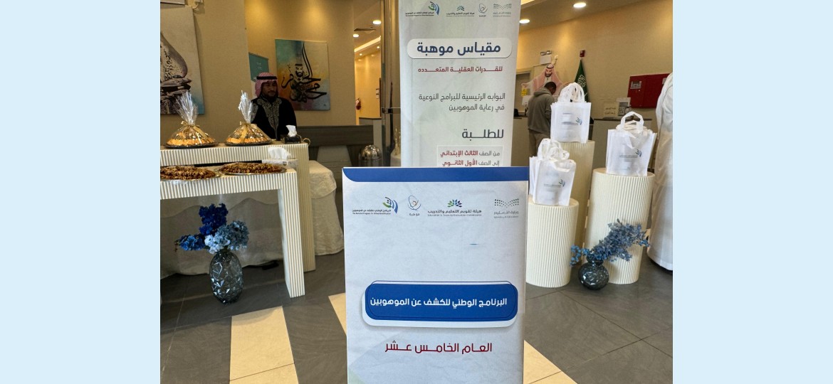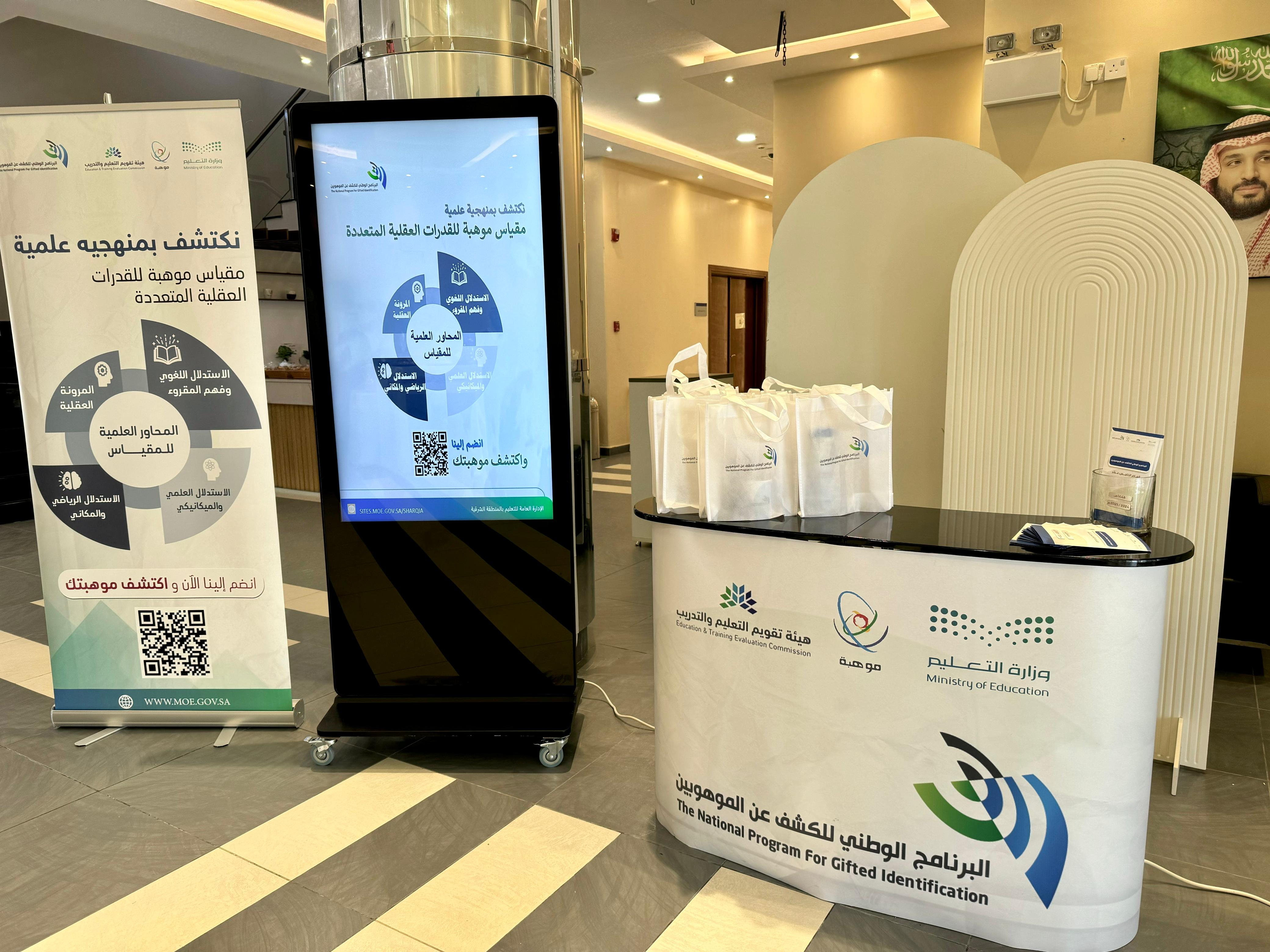 وذلك في إطار تقديم الرسائل التوعوية والتثقيفية عن آلية التسجيل بالبرنامج الوطني للكشف عن الموهوبين من خلال مقياس موهبة للقدرات العقلية المتعددة في مجالات اللغة والرياضيات والعلوم وبعض جوانب الإبداع فضلا ً عن العمل على بناء قاعدة بيانات شاملة ومفصلة للطلبة الموهوبين في المملكة .