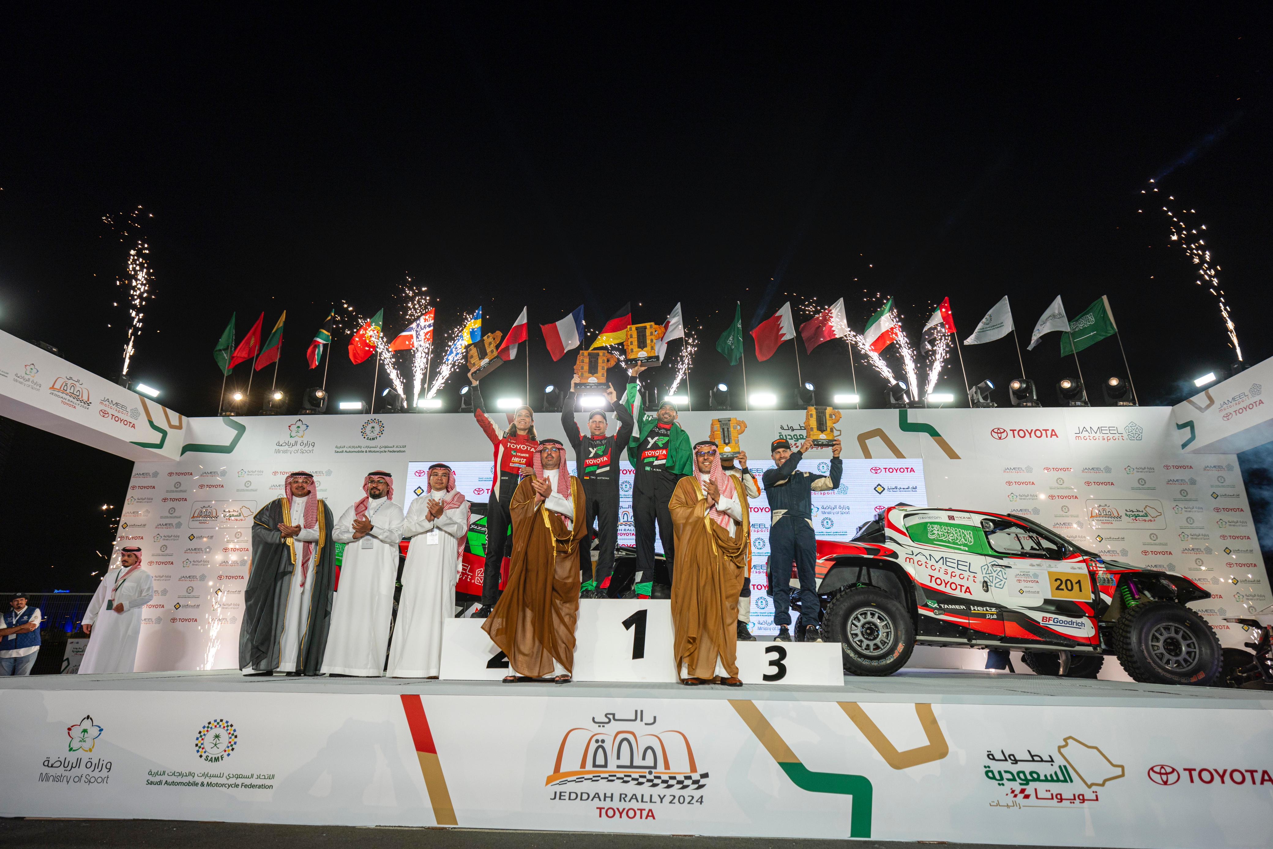 توفيقه، نجحنا في تحقيق لقب بطولة السعودية تويوتا للراليات الصحراوية للمرة الرابعة، واستطعنا الفوز بجميع جولاتها. أتوجه بخالص الشكر لشريك النجاح جميل لرياضة المحركات، وأشكر جماهيري الوفيّة التي كانت دائمًا مصدر إلهام ودافع لي لتحقيق الأفضل.”