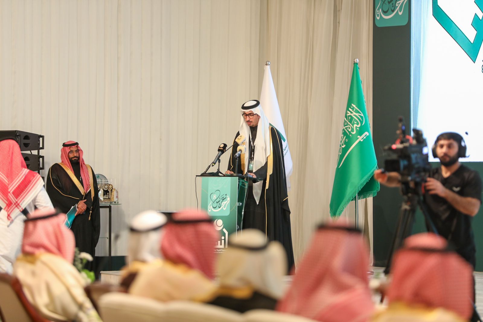 ثم كلمة الأبناء العرسان ألقاها نيابة عنهم العريس عبد الله القحطاني عبر فيها بأرق وأجمل العبارات عن مشاعر السعادة والفرح تكسوها البهجة والسرور في ليلة العمر ، مقدماً شكره وتقديره لسمو راعي الحفل لاهتمامه وحرصه على تمكين أبناء الجمعية في مختلف المسارات، كما شكر جمعية إنسان لجهودها في تحقيق الاستقرار الاجتماعي والنفسي للمستفيدين من خلال حفلات الزواج الجماعي، وتطرق الابن عبد الله إلى مسيرته التعليمية والعملية إلى أن حقق أهدافه وطموحاته مستعرضاً أحداث مسيرته ومراحل حياته منذ طفولته والممكنات التي توفرت له وهيأت له طريق النجاح .
