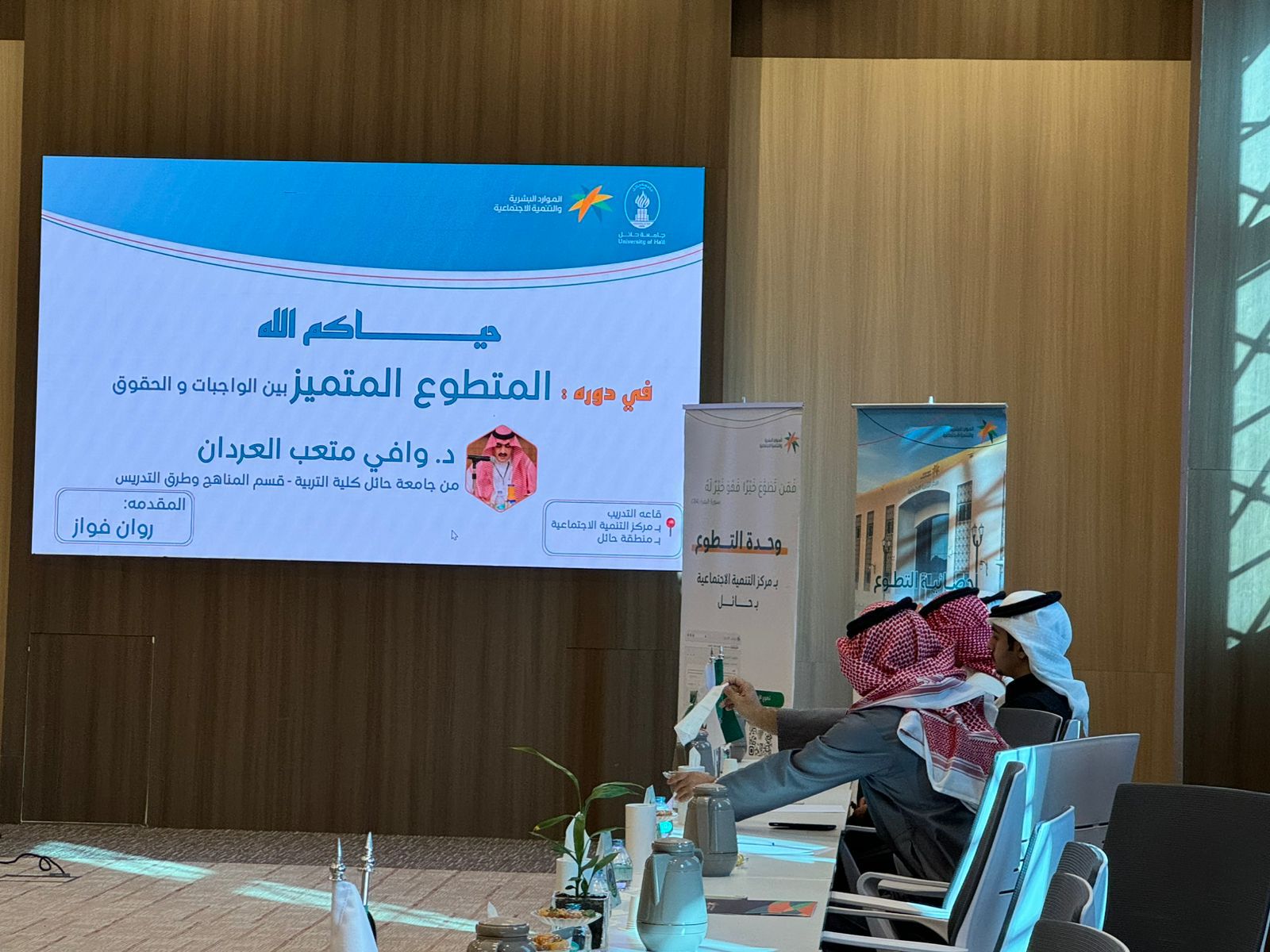 وسبق التكريم إقامة دورة ((المتطوع المتميز)) بقيادة المدرب الدكتور وافي العردان الذي أكّد وركّز على مجموعةٍ من النقاط التي تساهم في تميز المتطوعين.