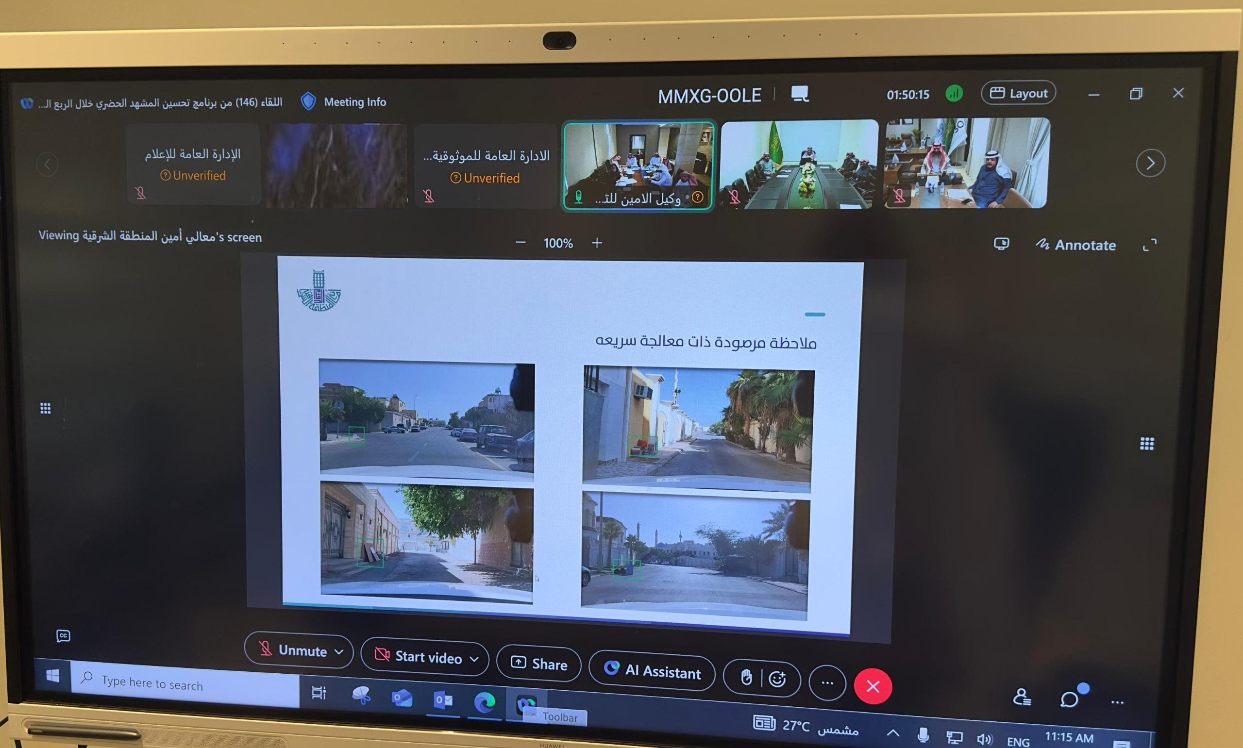 وناقش معاليه عرض غرفة عمليات تحسين المشهد الحضري، والذي تضمن مؤشر التشوه البصري، ورصد التشوهات البصرية في المناطق ذات الأولوية، وكذلك مناقشة تطبيق الخطة الاستباقية، والاطلاع على جهود البلديات في تطبيق الخطة، وجهود الإدارة العامة للحركة والدعم اللوجستي، كما تمت من خلاله مناقشة ملاحظات الرصد عند مسح المنطقة، وأعمال رصد عدسة بلدي، وتمت الإشارة إلى الملاحظات المرصودة، إضافة إلى جهود الأمانة في إصدار شهادة امتثال المباني، وتحديد الطرق المستهدفة في المرحلة الثانية، ومناقشة جهود الأمانة في امتثال المباني.