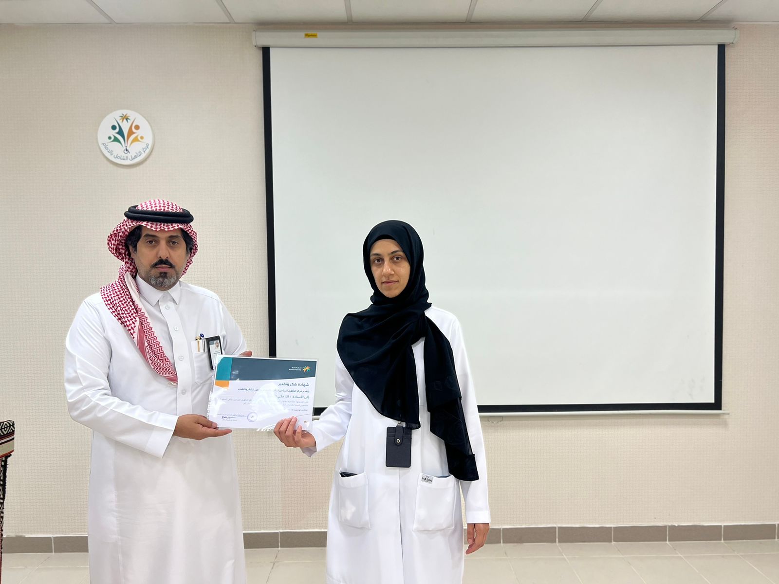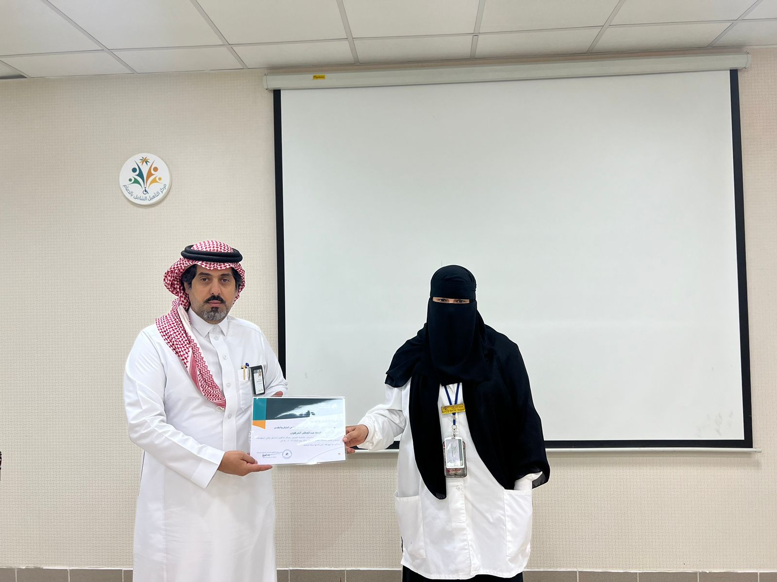و في الختام تم التأكيد على أن الالتزام بتعليمات و طرق مكافحة العدوى لها دور كبير بالحفاظ على الصحة العامة و الوقاية من حدوث عدوى وقد تم تقديم الشكر لمقدمي البرنامج وإعطاء شهادة الشكر للمحاضرين من قبل مدير مركز التأهيل الشامل للذكور بالدمام الاستاذ محمد بن علي آل بحير والترحيب بمثل هذه الفعاليات لما لها من دور بتطوير العمل بالمركز.