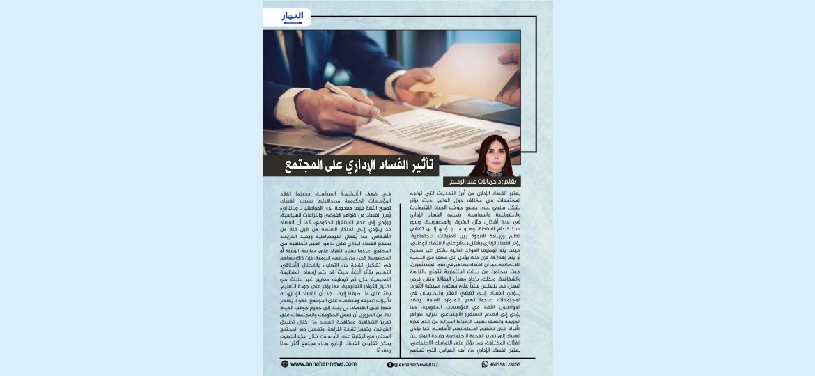 بناءً على ما تطرقنا إليه، نجد أن الفساد الإداري له تأثيرات عميقة ومتشعبة على المجتمع. فهو لا يقتصر فقط على الاقتصاد، بل يمتد إلى جميع جوانب الحياة. لذا، من الضروري أن تعمل الحكومات والمجتمعات على تعزيز الشفافية ومكافحة الفساد من خلال تطبيق القوانين، وتعزيز ثقافة النزاهة، وتفعيل دور المجتمع المدني في الرقابة على الأداء، من خلال هذه الجهود، يمكن تقليص الفساد الإداري وبناء مجتمع أكثر عدلاً وتقدمًا.