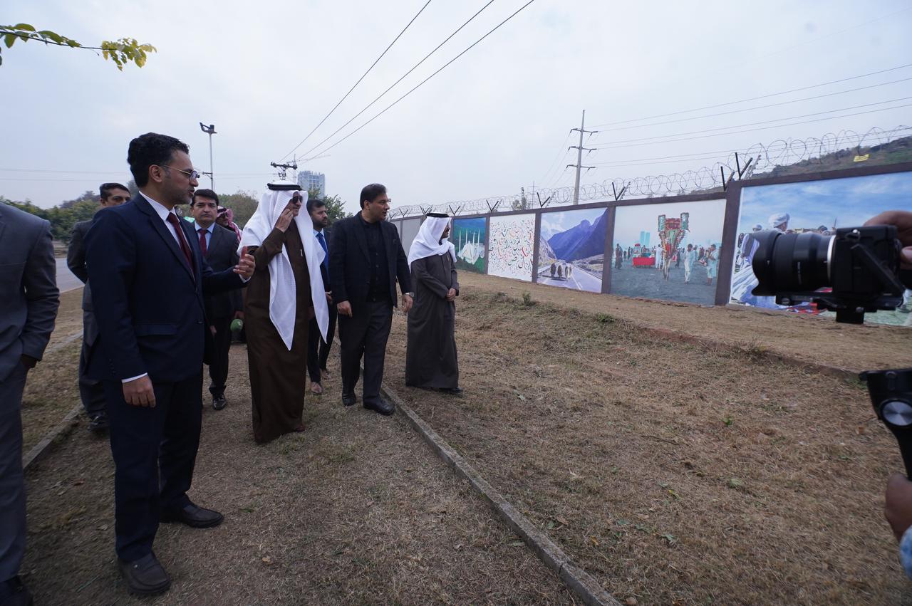 دشّن سفير خادم الحرمين الشريفين في باكستان الأستاذ نواف بن سعيد المالكي يوم أمس الخميس وبحضور مدير بلدية إسلام أباد (CDA) السيد محمد علي شودري، وعدد من المسؤولين الباكستانيين مبادرة الملحقية الإعلامية بالسفارة "جداريات إبداعية" لتزيّين الحائط المقابل لمبنى السفارة السعودية في إسلام أباد والسكن الخاص بالموظفين السعوديين في الحي الدبلوماسي.