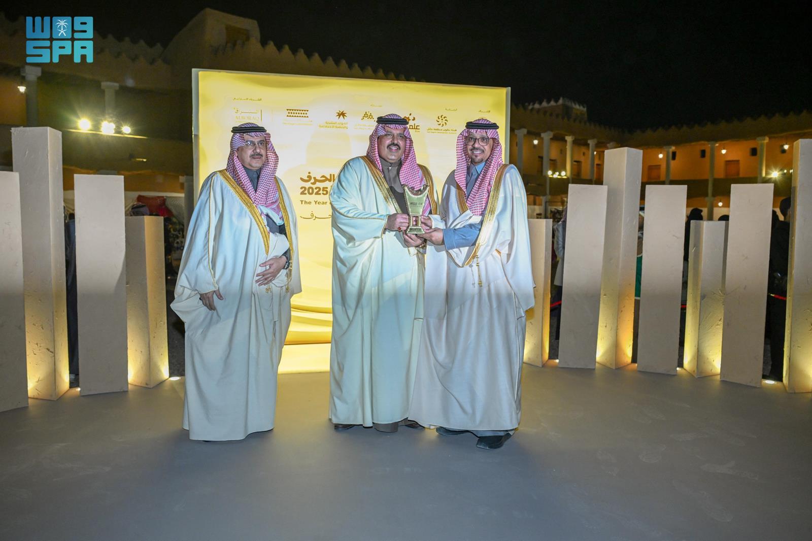 وكرّم سمو أمير منطقة حائل الرعاة والشركاء الإستراتيجيين للمهرجان, هيئة تطوير منطقة حائل, وأمانة المنطقة, وفرع وزارة الموارد البشرية والتنمية البشرية بالمنطقة, وفرع هيئة التراث بحائل.
