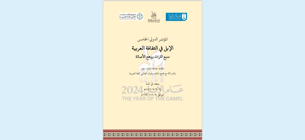 برعاية رئيس جامعة الملك سعود أ.د. عبد الله السلمان تنظم جامعة الملك سعود بالشراكة مع مجمع الملك سلمان العالمي للغة العربية المؤتمر الدولي الخامس الإبل في الثقافة العربية الذي ينعقد في أيام الثلاثاء والأربعاء والخميس الموافق 14-16/7/1446هـ -14-16/7/2025م.
