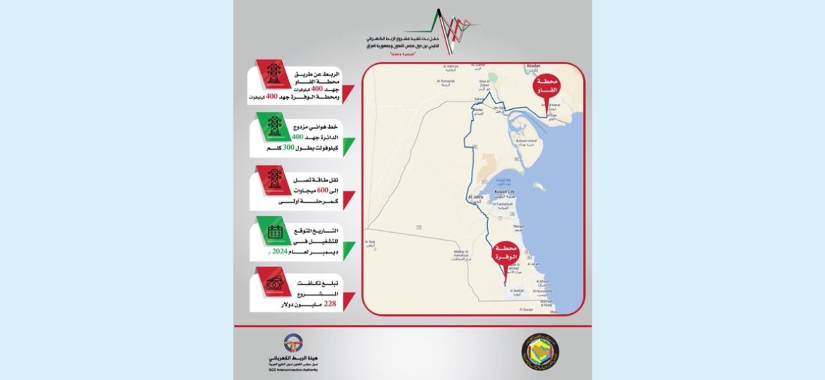 بدء تنفيذ مشروع الربط الكهربائي الخليجي بين دول مجلس التعاون وجمهورية العراق.