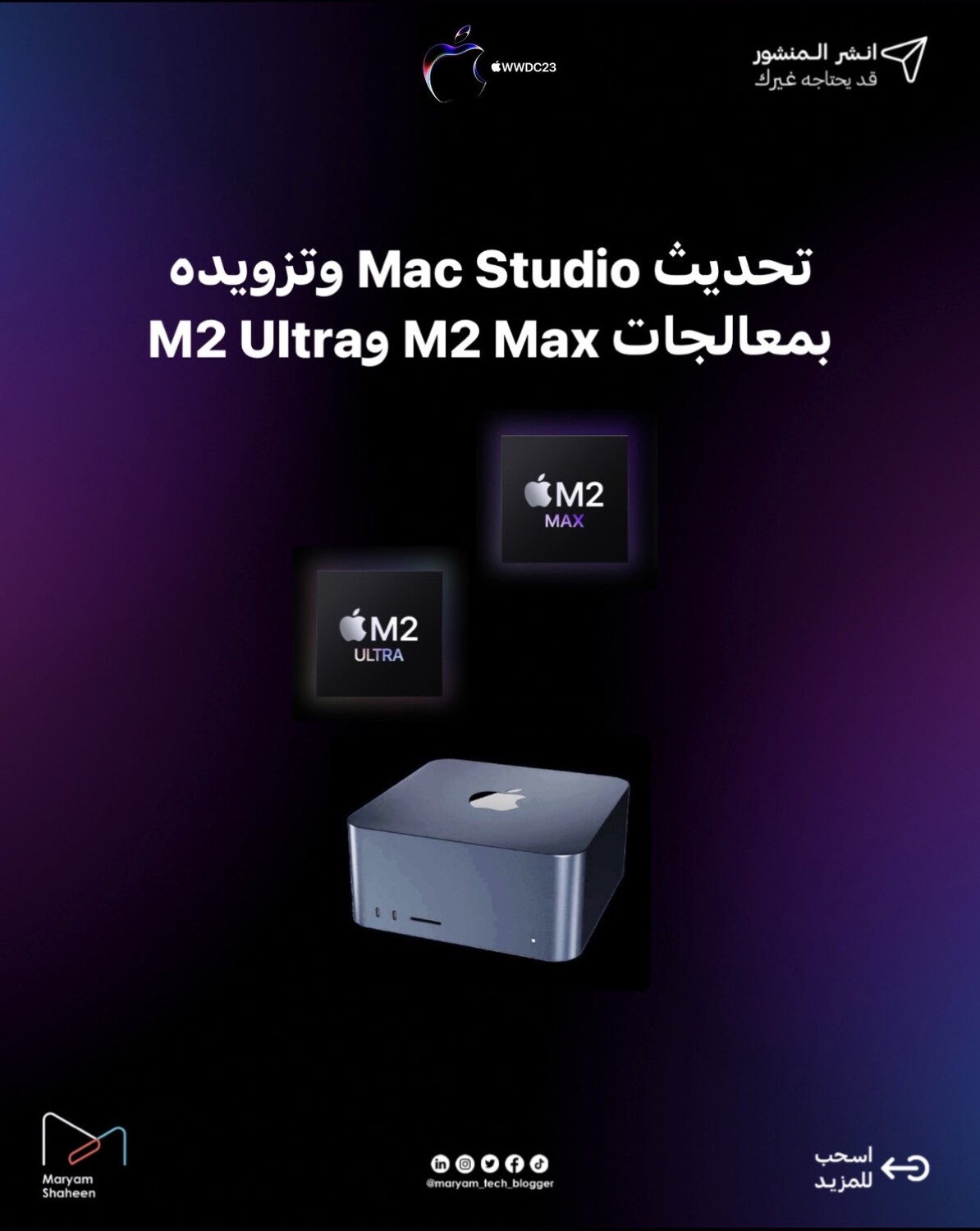 2️⃣ تحديث Mac Studio وتزويده بمعالجات M2 Max وM2 Ultra