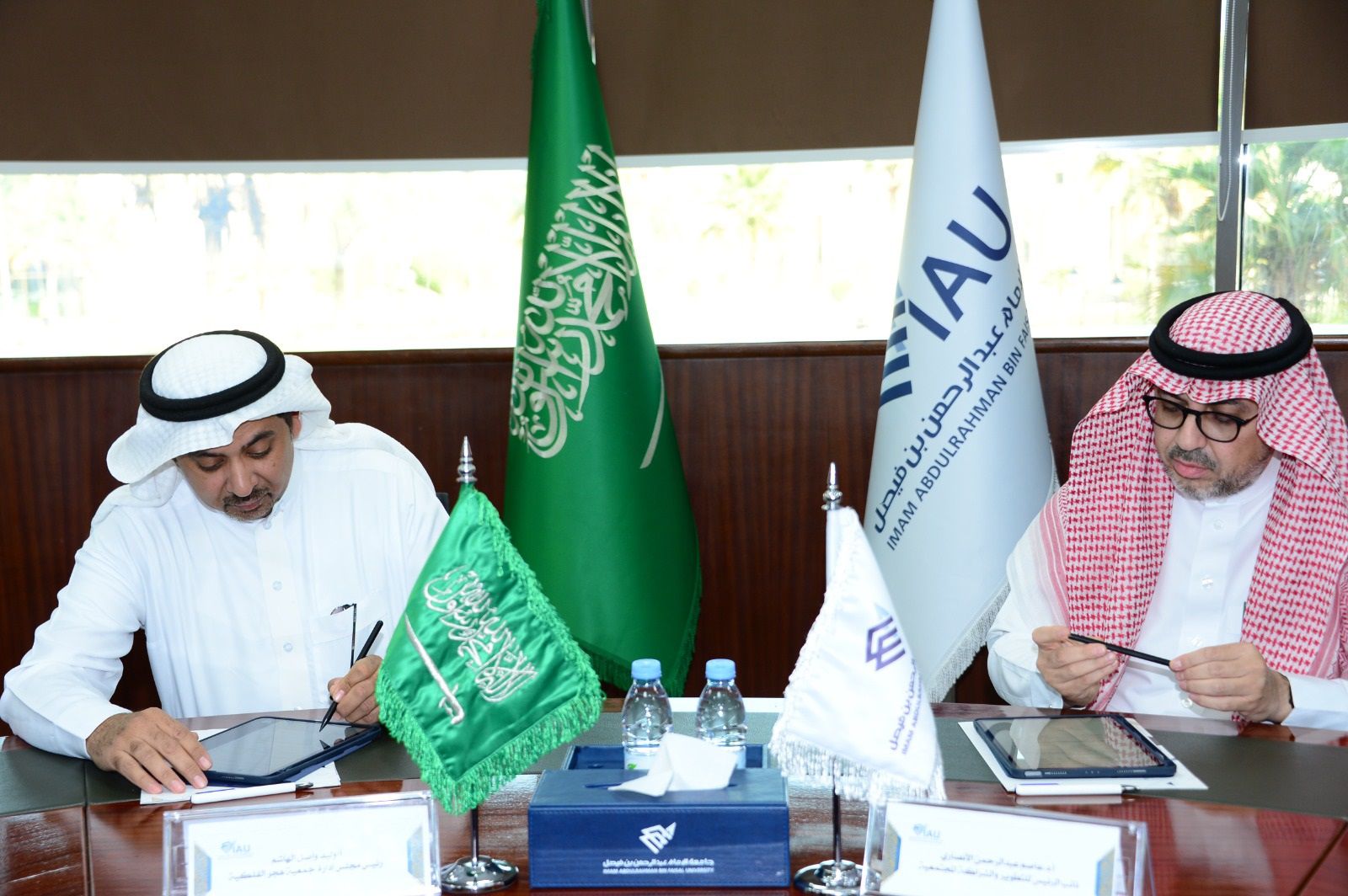 أبرمت جامعة الإمام عبد الرحمن بن فيصل وجمعية هجر الفلكية مذكرة تفاهم وذلك ضمن اهداف عامة ومجالات تعاون مشتركة أهمها تعزيز الثقافة العلمية في مجال الفلك لدى الجهات المستفيدة والمجتمع المحلي ، و تقديم خدمات للمساهمة في بناء مركز فلكي شامل ووقع المذكرة من الجامعة القائم بأعمال نائب رئيس الجامعة للتطوير والشراكة المجتمعية أ.د. عاصم بن عبدالرحمن الأنصاري ومن الجمعية رئيس مجلس الإدارة الأستاذ وليد واصل الهاشم، بحضور أ. د. دلال بنت محمد الأمين الشنقيطي عميدة كلية العلوم والدراسات الإنسانية بالجبيل ومدير عام المركز الجامعي للإعلام والاتصال الدكتور طفيل اليوسف ، و د. سارة بنت علي الدليجان مديرة وحدة الشراكات المحلية والدولية ، و د. نوف خليفة السليم رئيسة قسم الفيزياء ، ود. نادية يوسف الدليلي منسقة الشراكة بين قسم الفيزياء وجمعية هجر الفلكية .