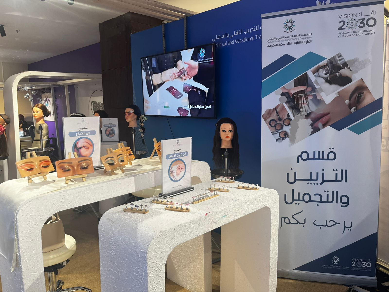 واستغل قسم التزيين والتجميل المعرض للتعريف ببرامجه المتخصصة ومخرجاته المتميزة، حيث قدمت المتدربات استشارات مجانية للزائرات حول أحدث الاتجاهات والتقنيات في عالم التجميل، كما شمل الجناح محطات تعريفية بمناهج التدريب وأهداف الكلية في تأهيل الكوادر النسائية الوطنية بما يلبي احتياجات سوق العمل.