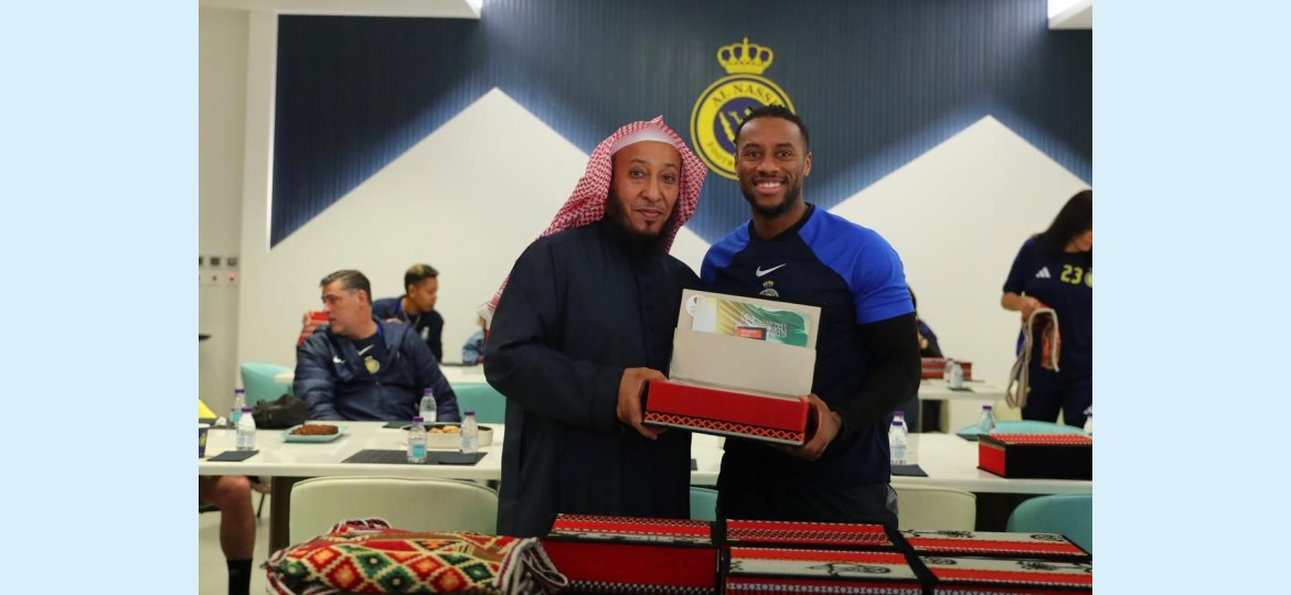 نفذت جمعية هدية عالم بالتعاون مع إدارة الاستدامة البيئية والاجتماعية بشركة نادي النصر مبادرة استهدفت اللاعبين الأجانب في الألعاب المختلفة، تعرفوا من خلالها على قيمنا وقُدمت لهم الهدايا المشتملة على قطع تراثية وبعض المواد التعريفية ببلادنا وتراجم معاني القرآن الكريم بلغاتهم ويأتي ذلك استمراراً لرسالة الجمعية في التعريف بسماحة الإسلام وهويتنا وثقافتنا الوطنية.