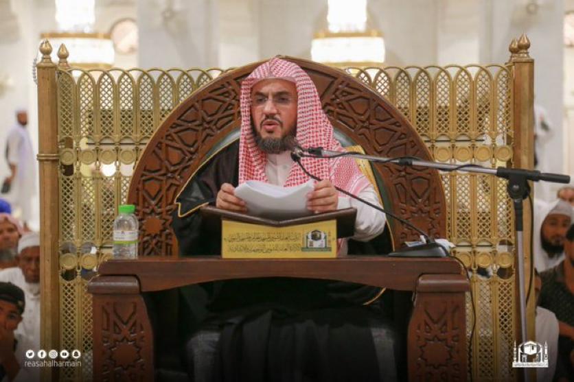 وأكد سماحته بأن في موسم الحج لمؤتمر عظيم يدعو الله تعالى إليه المسلمين، ( لِيَشْهَدُوا مَنَافِعَ لَهُمْ )، والتي أصلها وأساسها انطلاق القلب إلى الله، وانجذابه إلى طاعته، حيث يفارق المسلم وطنه وأهله وبلده استجابة لنداء الله الذي فرض عليه ذلك، والتقاء المسلمين بعضهم ببعض، وتعارفهم وتآلفهم وسيلة قوية إلى قوتهم واستقامة حالهم، وفق الله المسلمين لما يحبه ويرضاه.وبين سماحته أن حسد أعداء الله تعالى الأمة الإسلامية على هذه النعمة العظمية فأخذوا في بث الدعوات المضللة والأفكار الهدامة بين المسلمين، والله يعلم أن الإسلام منهم بريء بمساعدة الأئمة المضلين الذين تظاهروا بالإسلام في دعواتهم، وإذا تأمل المسلم البسيط تلك الدعوات رآها جهالات وضلالات وخداعا للأمة وتضليلا لها ، ذلك أن أرباب هذه الدعوات لهم علاقة قوية بأعداء الإسلام، يرسمون لهم الطريق ويخططون لهم المخططات، ليضربوا أهل الإسلام بعضهم ببعض، فجعلوا منهم جسرا يعبرون عليه لنيل أغراضهم وأهوائهم، فهم إنما يدعون لأنفسهم وأغراضهم وأهوائهم، ودعواتهم مشبوهة ، وليست إلا لأغراض دنيوية لأحزاب، أو عصبية جاهلية أو دعوات قطرية وعرقية، وقد وصفهم الله تعالى فقال: ( وَإِنْ يَقُولُوا تَسْمَعْ لِقَوْلِهِمْ كَأَنَّهُمْ خُشُبٌ مُسَنَّدَةٌ )، وقال تعالى: ( وَمِنَ النَّاسِ مَنْ يُعْجِبُكَ قَوْلُهُ فِي الْحَيَاةِ الدُّنْيَا وَيُشْهِدُ اللَّهَ عَلَى مَا فِي قَلْبِهِ وَهُوَ أَلَدُّ الْخِصَامِ * وَإِذَا تَوَلَّى سَعَى فِي الأَرْضِ لِيُفْسِدَ فِيهَا وَيُهْلِكَ الْحَرْثَ وَالنَّسْلَ وَاللَّهُ لاَ يُحِبُّ الْفَسَادَ ).