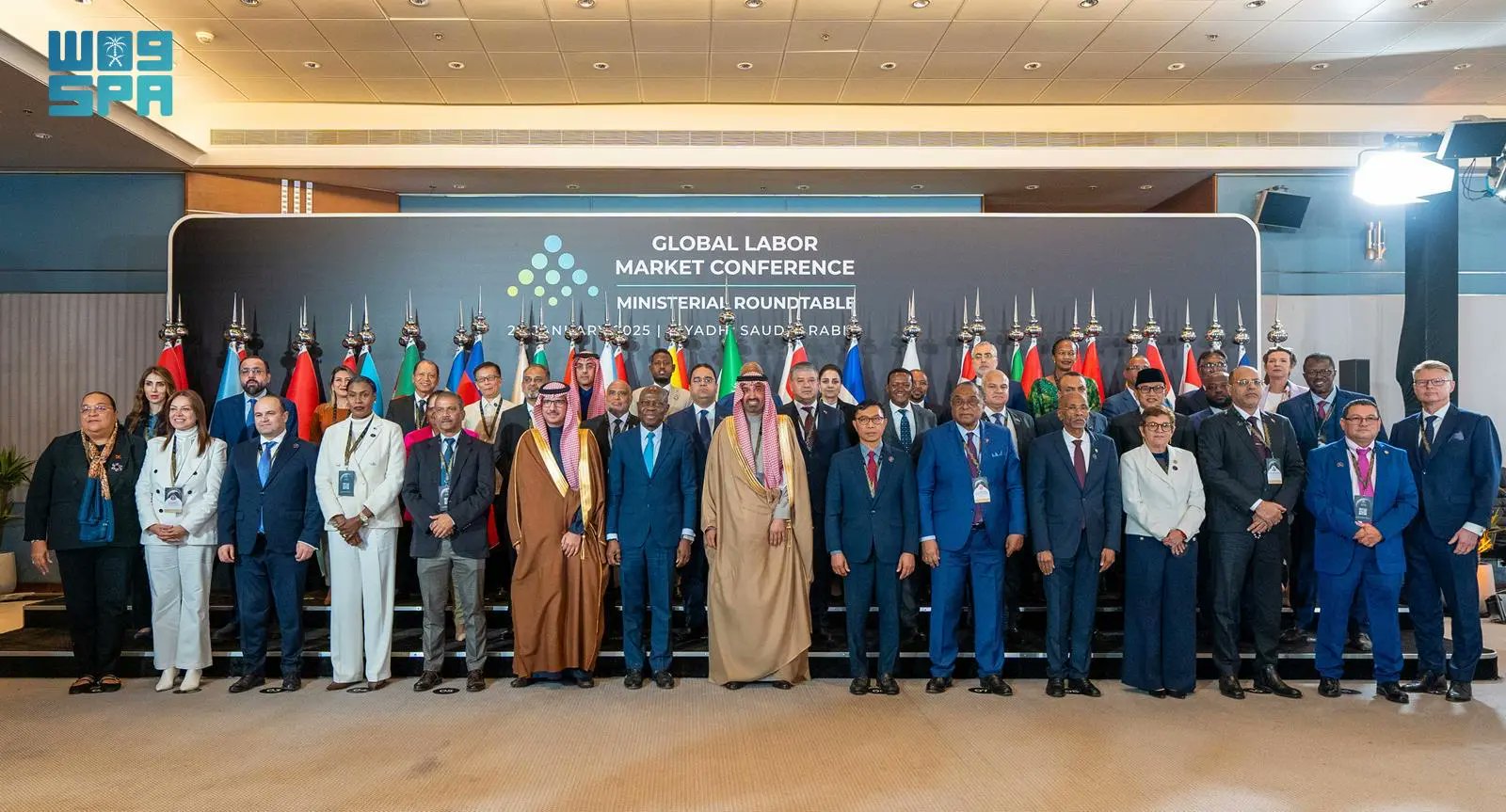 اخُتتمت اليوم، أعمال الاجتماع الوزاري "الطاولة المستديرة" لوزراء العمل ضمن النسخة الثانية من المؤتمر الدولي لسوق العمل، برئاسة معالي وزير الموارد البشرية والتنمية الاجتماعية المهندس أحمد بن سليمان الراجحي، بحضور 40 وزيرًا للعمل من دول مختلفة حول العالم، تشمل مجموعة العشرين وأوروبا وآسيا ومنطقة الشرق الأوسط وأفريقيا، والأمريكيتين، إضافة إلى المدير العام لمنظمة العمل الدولية السيد جيلبرت هونغبو.