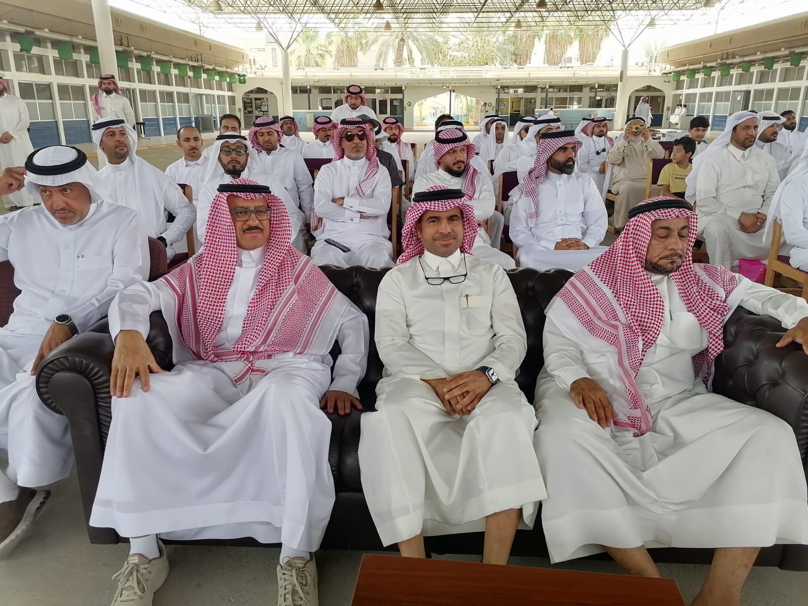 وبذل مدير المدرسة الأستاذ القدير - خالد بن مبارك المحارفي ومساعدية وأعضاء هيئة التدريس بالمدرسة وكذلك الاداريين والمستخدمين ومنسوبي المدرسة كاملة جهوداً كبيرة في إخراج حفل رائع نال استحسان وإشادة كبيرة من الحضور