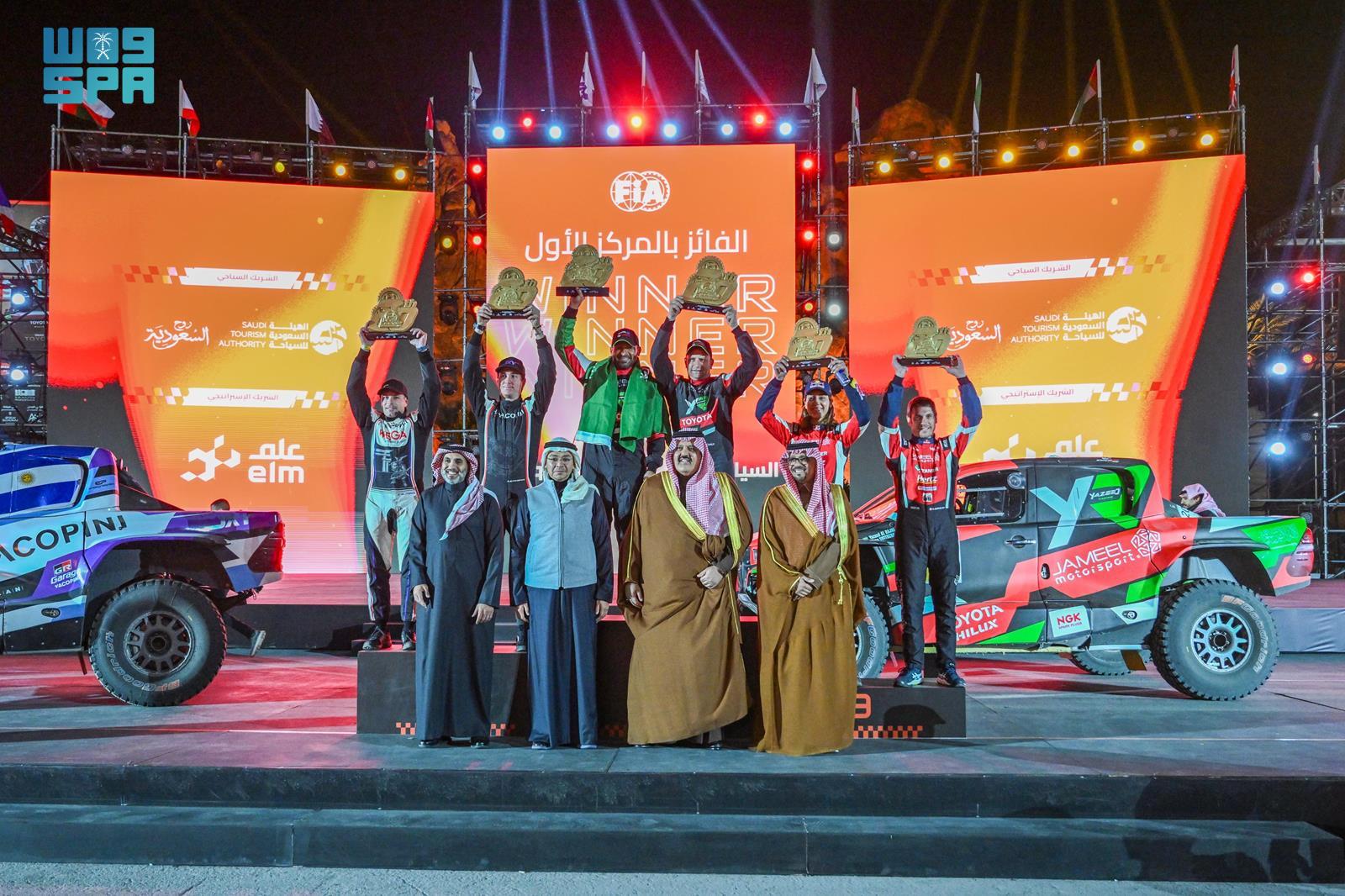 ثم توّج سموه المتسابقين أبطال رالي حائل تويوتا الدولي 2025 في نسخته الـ 20.