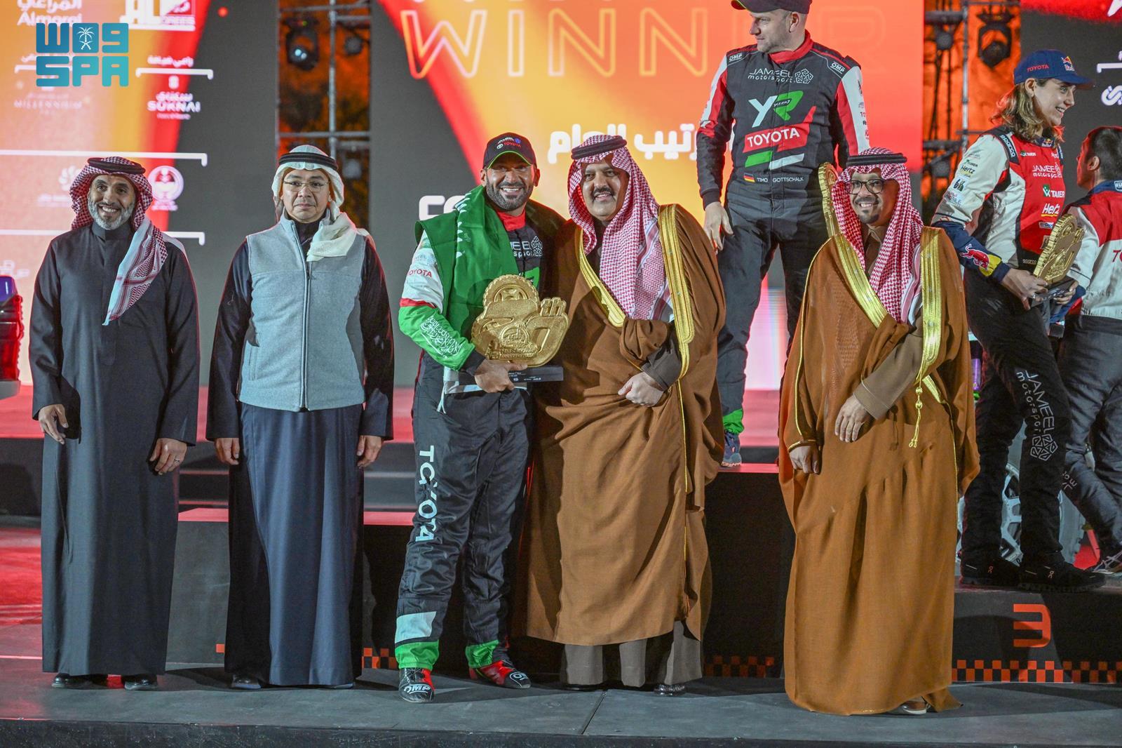 توّج صاحب السمو الملكي الأمير عبدالعزيز بن سعد بن عبدالعزيز أمير منطقة حائل رئيس هيئة تطوير المنطقة رئيس اللجنة العليا المنظمة لرالي حائل تويوتا الدولي 2025، المتسابق يزيد الراجحي بلقب الرالي في عامه الـ 20، الذي يمثل بطولة العالم للباها وبطولة الشرق الأوسط للباها وبطولة آسيا للدراجات النارية، إضافةً إلى بطولة السعودية تويوتا في عامها الخامس، بتنظيم من هيئة تطوير منطقة حائل بالتعاون مع وزارة الرياضة والاتحاد السعودي للسيارات والدرّاجات النارية.