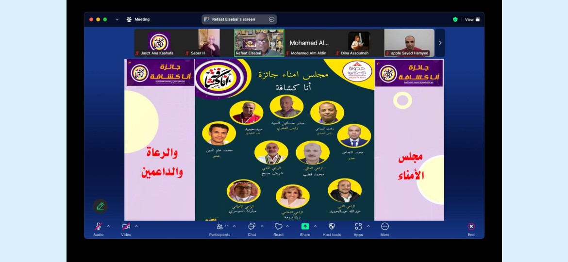عقد مجلس أمناء جائزة "أنا كشافة" يوم أمس اجتماعه الأول "عبر الاتصال المرئي" بحضور الرئيس الفخري للجائزة، عضو المجلس القائد صابر حسانين السيد، كما حضره الرعاة والداعمين للجائزة.