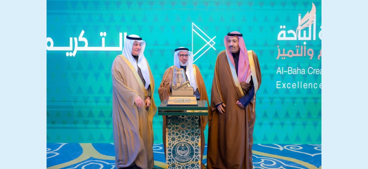 كرّم صاحب السمو الملكي الأمير الدكتور حسام بن سعود بن عبدالعزيز أمير منطقة الباحة رئيس مجلس إدارة جائزة الباحة للإبداع والتميز، بقاعة الاستقبالات الكبرى بديوان الإمارة اليوم، الفائزين والفائزات بجائزة الباحة للإبداع والتميز في دورتها العاشرة لهذا العام 1446هـ ، بحضور ضيف شرف الجائزة معالي وزير البيئة والمياه والزراعة المهندس عبد الرحمن بن عبدالمحسن الفضلي .