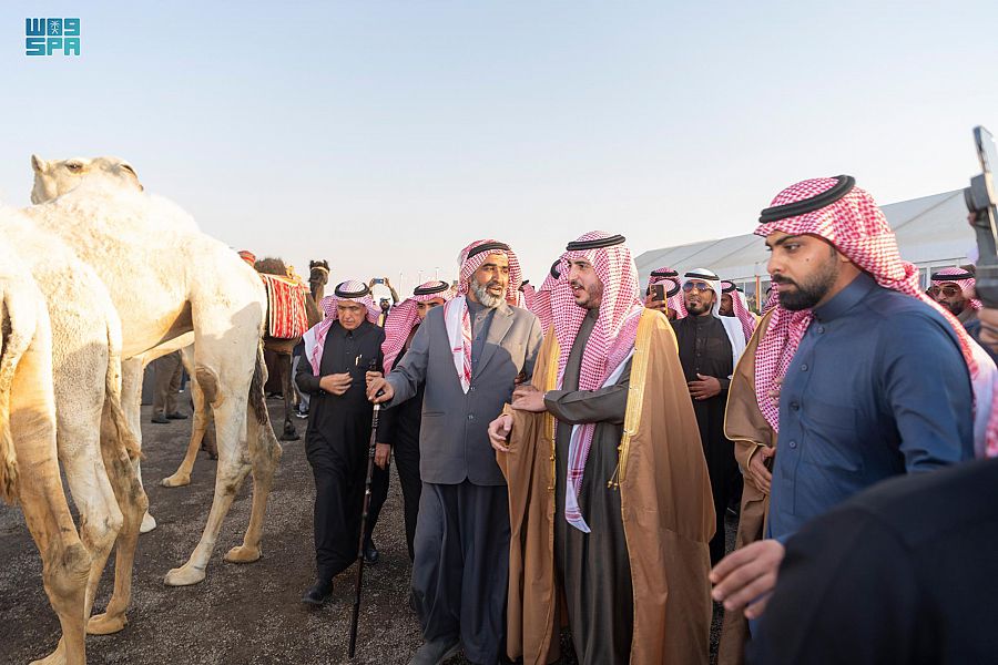 جاء ذلك خلال تدشين سموه لمزاد الإبل بمنطقة الجوف بنسخته الأولى، الذي يقام بالتعاون مع نادي الإبل وتنظمه إمارة منطقة الجوف بمشاركة عدد من القطاعات ، وذلك في -نفود لايجه - ويستمر لمدة 10 أيام .