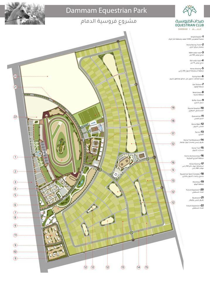 وأوضح أن تصميم النادي وميدان الفروسية يأخذ في الاعتبار أحدث المعايير الدولية في مجال رياضة الفروسية، بما يضمن توفير بنية تحتية متقدمة ومرافق حديثة تلبي احتياجات الفرسان والجمهور ، كما سيضم النادي مرافق تدريبية، إسطبلات مجهزة بأعلى المستويات، ومناطق ترفيهية تلائم الزوار من مختلف الأعمار وأكد أن المشروع يهدف أيضًا إلى دعم السياحة الرياضية في المنطقة الشرقية، حيث سيتم تصميم النادي ليكون وجهة مثالية لعشاق الخيل من داخل المملكة وخارجها. كما ستتوفر مرافق مخصصة لاستضافة العائلات والزوار، مما يعزز من جاذبية النادي كمعلم رياضي وترفيهي على حد سواء.