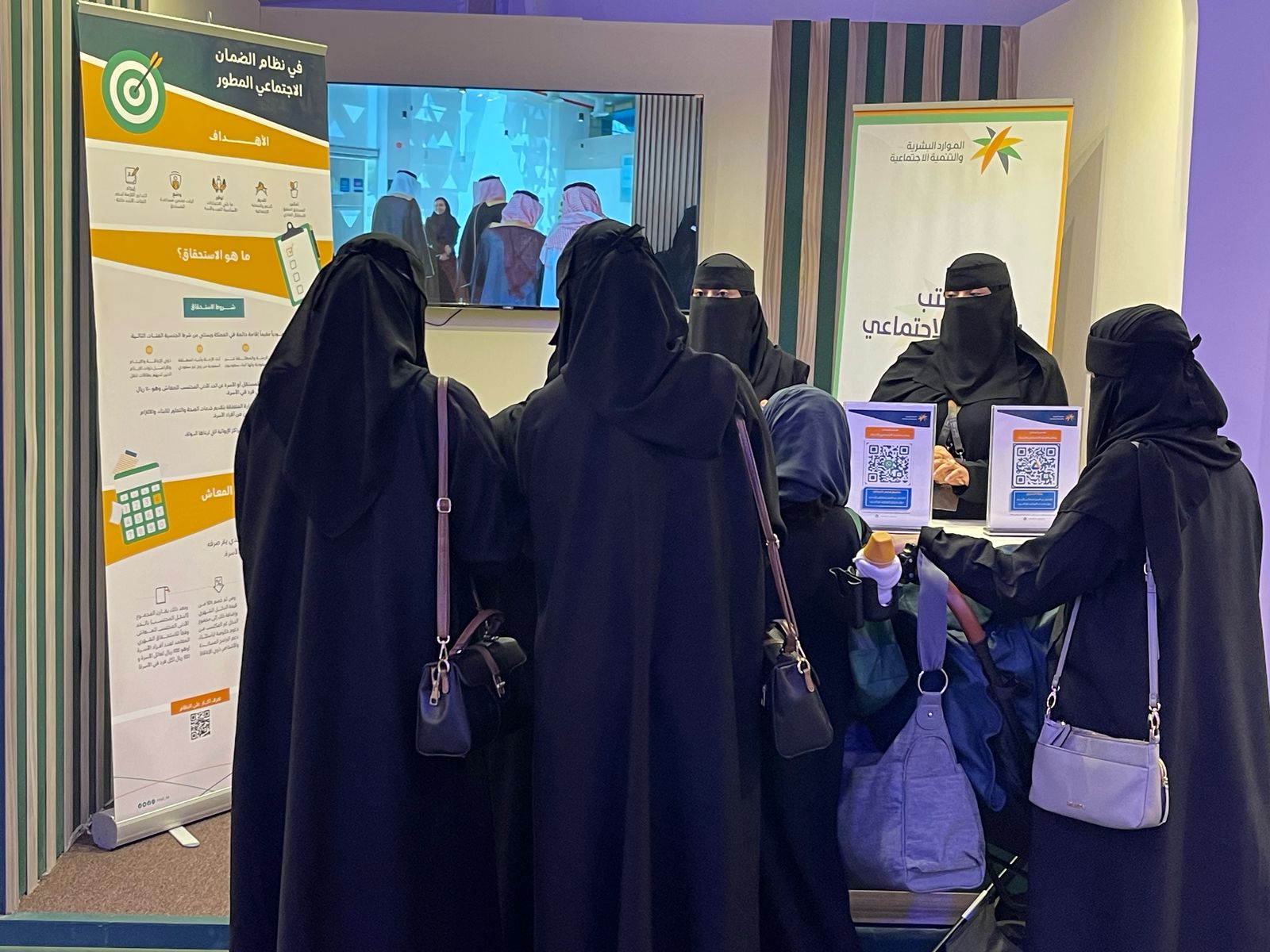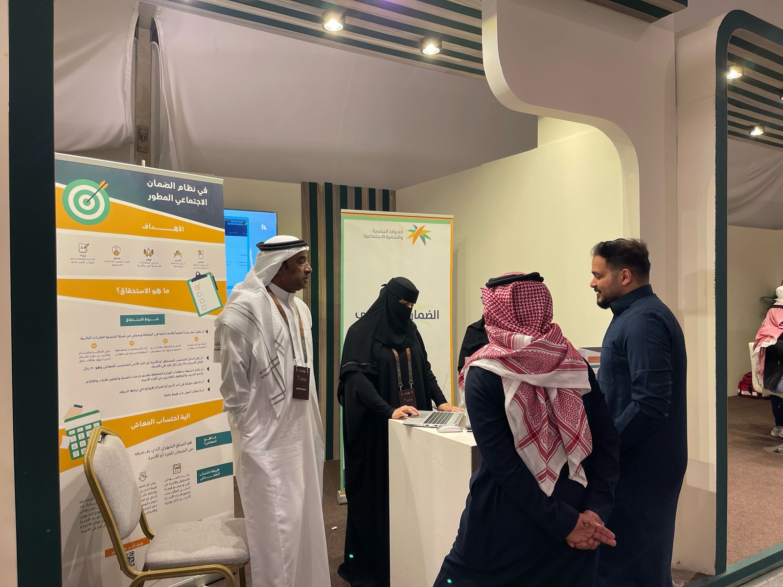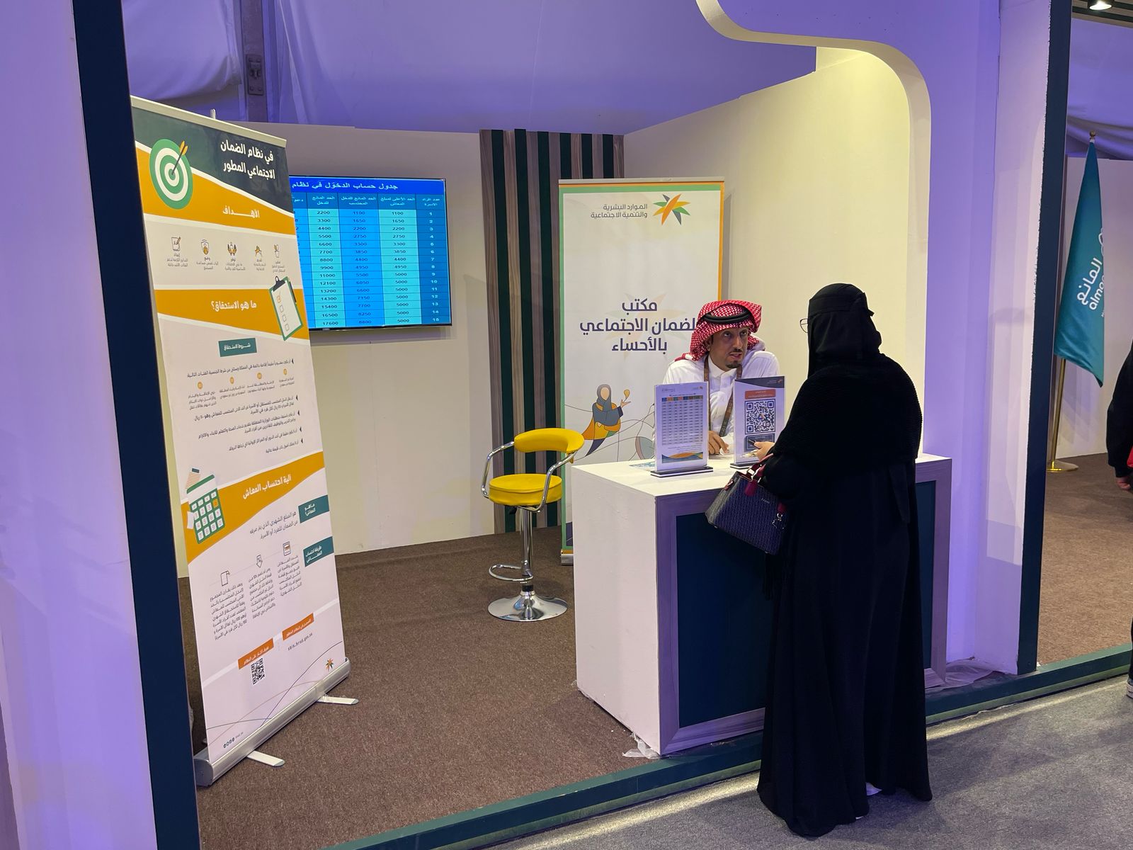 شهد الركن اقبالاً كبيراً من الزائرين للمهرجان البالغ عددهم اكثر من ٦٠٠ زائر بمشاركة نخبة من الباحثين والباحث من منسوبي المكتب، للتعريف بخدمات نظام الضمان الاجتماعي المطور و التمكين والإجابة على أسئلتهم واستفساراتهم بالإضافة إلى شرح آلية التسجيل والاستحقاق في منصة الدعم والحماية الاجتماعية لنظام الضمان الاجتماعي المطور.