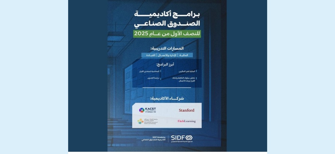 أعلنت أكاديمية الصندوق الصناعي عن إطلاق برامجها التدريبية لعام 2025م، التي تشمل مجموعة متنوعة من البرامج المخصصة لتطوير المهارات في مجالات: المالية، والأعمال، والإدارة، والقيادة، والابتكار، حيث ينطلق أول برنامج في 19 فبراير، وتستمر البرامج على مدار العام.
