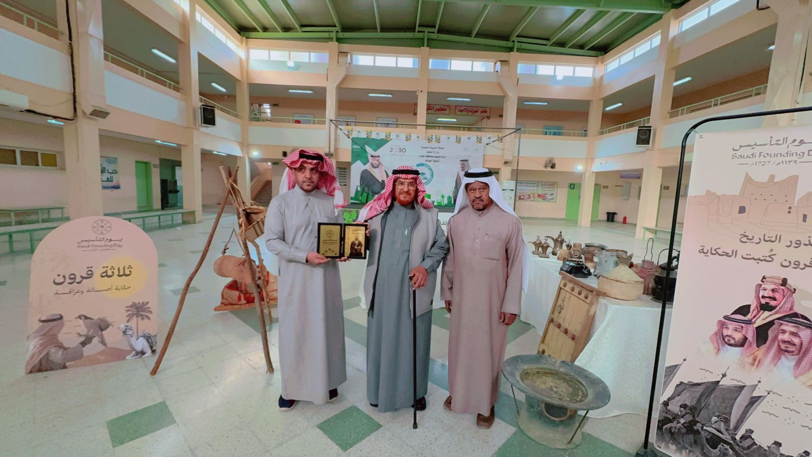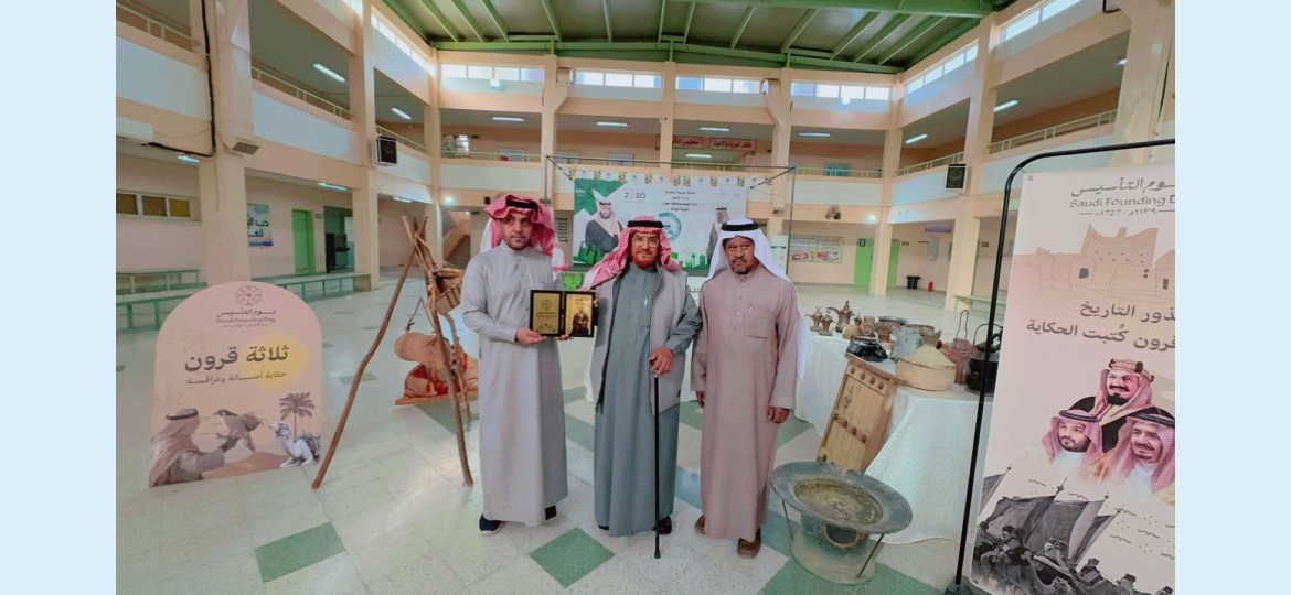 كرّم مدير ثانوية الهياثم، الأستاذ حزام بن محمد القحطاني، رئيس جمعية البر الخيرية، الأستاذ مدوخ بن محمد العاصمي، تقديراً لمشاركتهما الفعّالة في برنامج "يوم التأسيس" الذي أُقيم في المدرسة.