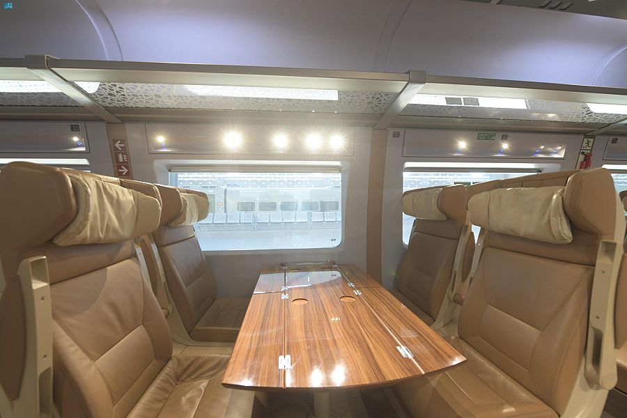 و يتم تشغيل قطار الحرمين السريع بعدد 35 قطارًا كهربائيًا، حيث تبلغ الطاقة الاستيعابية للقطار الواحد منها 417 راكبًا من خلال 13 عربة مقسمة إلى 5 مقصورات لدرجة الأعمال، بالإضافة إلى كافتريا، و8 مقصورات للدرجة السياحية، ليبلغ بذلك عدد مقاعد درجة الأعمال 113 مقعدًا، في حين يبلغ عدد مقاعد الدرجة السياحية 304 مقاعد.
