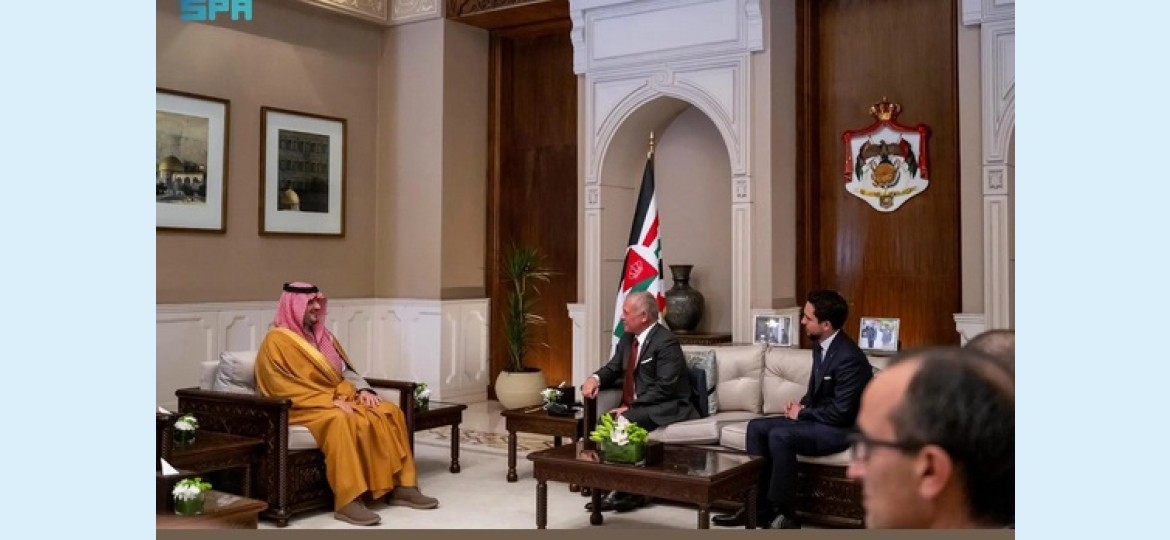 بتوجيه من القيادة - حفظها الله - التقى صاحب السمو الملكي الأمير عبدالعزيز بن سعود بن نايف بن عبدالعزيز، وزير الداخلية، اليوم، جلالة الملك عبدالله الثاني بن الحسين ملك المملكة الأردنية الهاشمية، بحضور صاحب السمو الملكي الأمير الحسين بن عبدالله الثاني ولي العهد بالمملكة الأردنية الهاشمية، وذلك في قصر بسمان الزاهر بالعاصمة عمان.