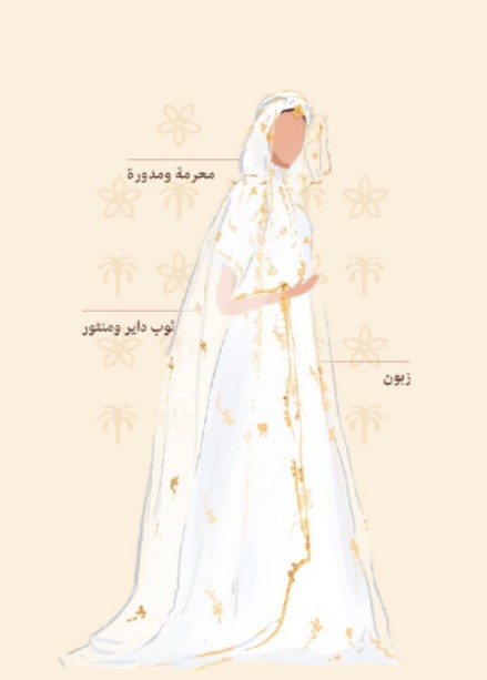 تلبس النساء في الأعراس ثوب الصون وهو ثوب مستطيل الشكل ضيق من عند الرقبة يوجد عليه قماش اخرى يغطي الأكمام ووسط الثوب، نفسه ايضاً ثوب الصدرة الذي يكون خفيفاً مصنوعاً من القطن المطرز من عند الأكتاف.