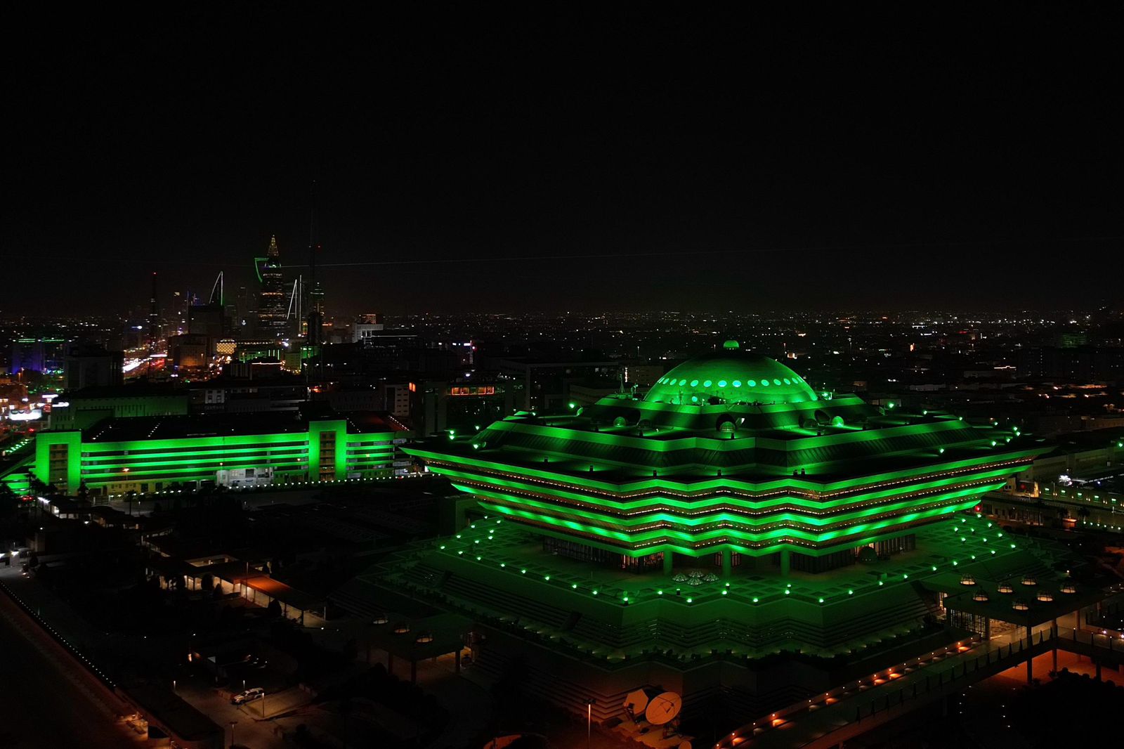 اكتست مباني وزارة الداخلية وإمارات المناطق والقطاعات الأمنية في جميع مناطق المملكة باللون الأخضر احتفالاً وابتهاجًا بذكرى يوم التأسيس للمملكة العربية السعودية.