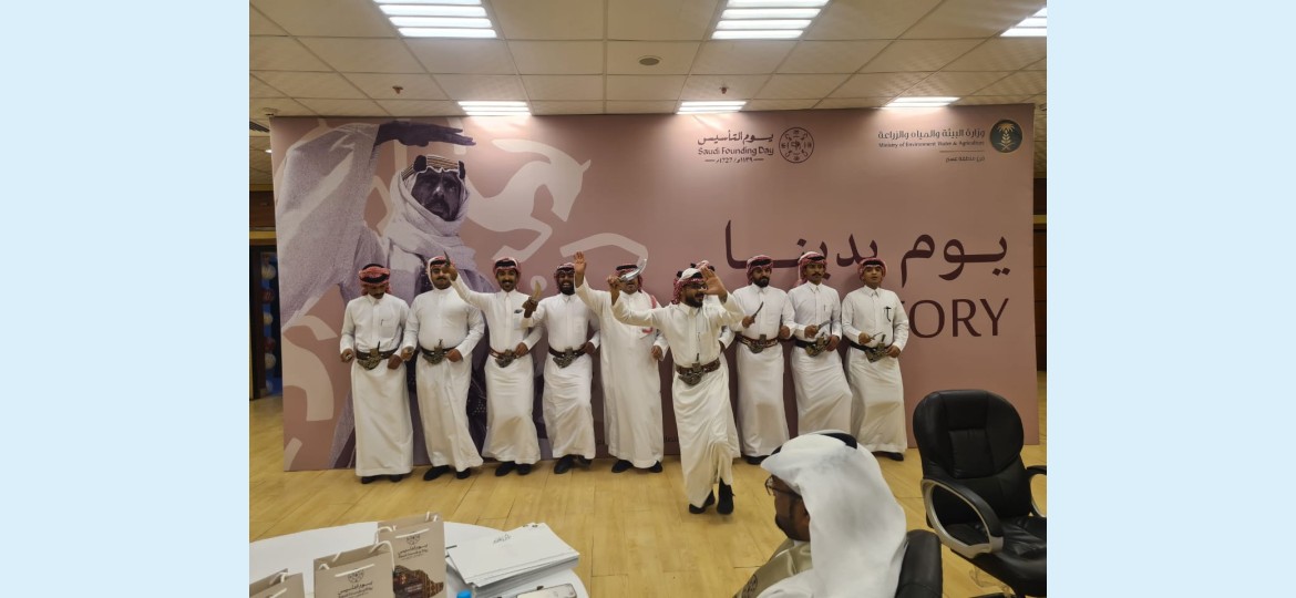 ثم مشاركة وطنية ليوم التأسيس لفرقة عسير استمتع بها الموظفين واستمعوا للقصائد الوطنية الملحنة ة.