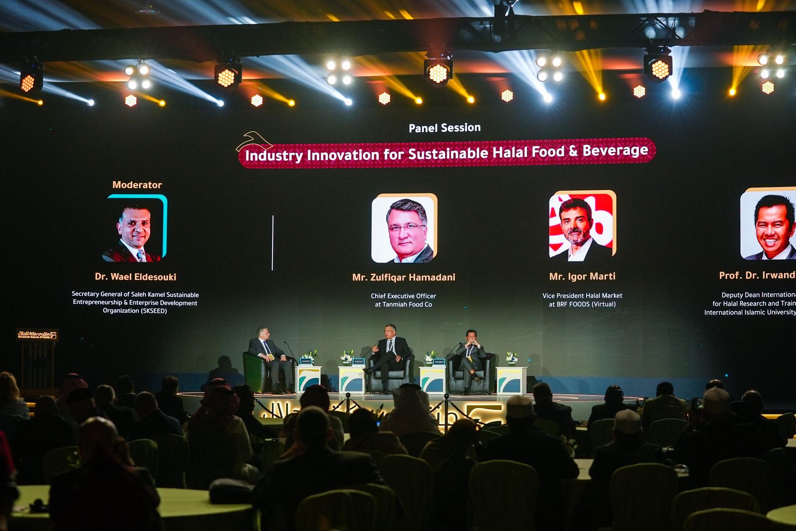 وناقشت الجلسة الاولى "الابتكار الصناعي لتعزيز استدامة قطاع الأغذية والمشروبات الحلال"، وتحدث فيها المشاركون عن تعزيز الإنتاج الصناعي لدعم ممارسات الحلال المستدامة، والتعاون لتعزيز التقدم الصناعي المبتكر، ودعم الاستدامة من أجل الحفاظ على البيئة وخفض التلوث.