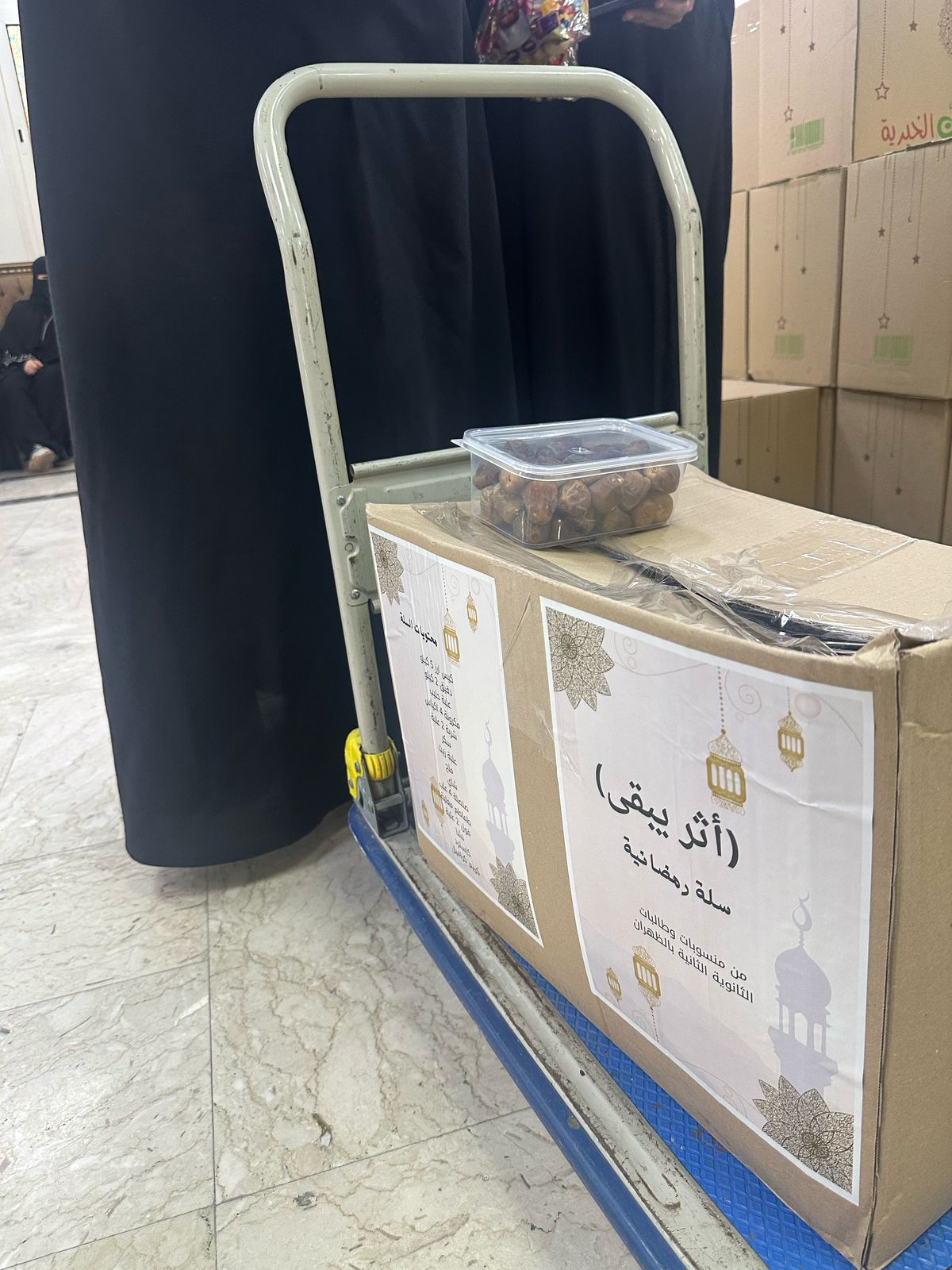 وتوجهت المديرة بالشكر إلى المساهمين الذين كان لهم دور كبير في إنجاح هذه الفعالية، حيث شمل المساهمين: “الأفكار الذهبية”، وفريق “بصمتنا خضراء البيئي”، ومدرسة الثانوية الثانية بالظهران، بالإضافة إلى “بيلا سويت” و”مهندسي البترول”. وقد تم توزيع السلال الرمضانية بواقع 200 سلة، شملت مواد غذائية أساسية تسهم في توفير احتياجات الأسر خلال شهر رمضان المبارك.