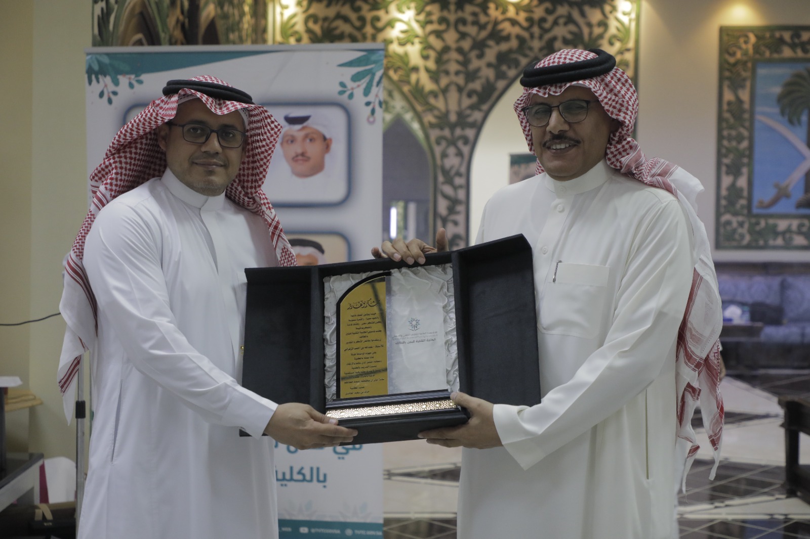 حيث تم تكريمهم من الكلية بدروع تقديرية وهدايا عينية خاصة قدمها عميد الكلية التقنية بالطائف الأستاذ / خالد الغامدي ، ثم تم تكريم الجميع بهدايا خاصة من الزملاء بالكلية .